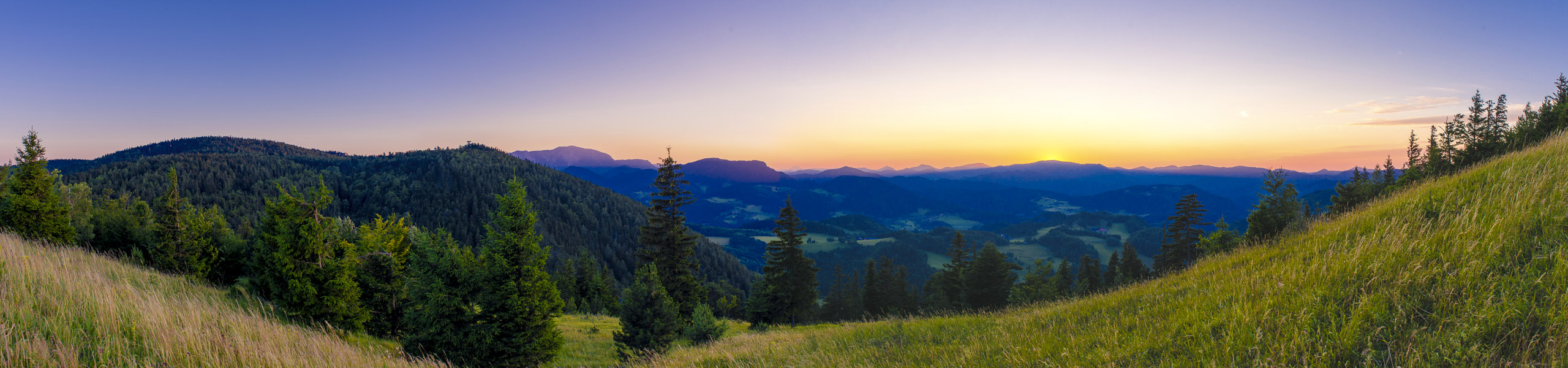 A last evening panorama from the grassland beneath the Waldeggerhaus.