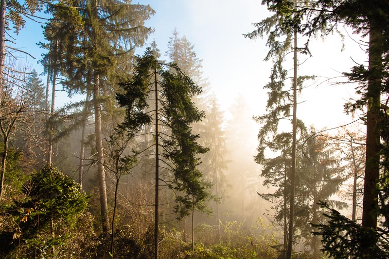 Dichter Nebel über Winzendorf. Sonnenschein in der Höhe, und so fahre ich wieder einmal auf die Hohe Wand.