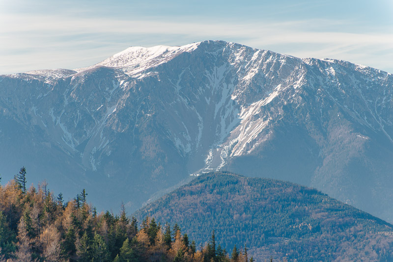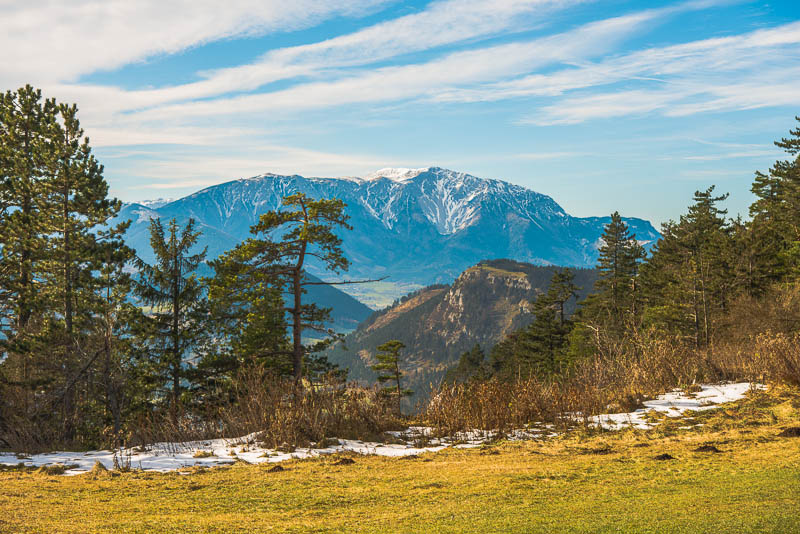 Blick von der Kleinen Kanzel zu Schneeberg, Dürrer Wand und Unterberg.