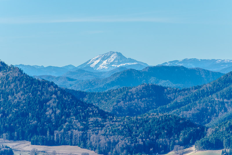 ... and Ötscher (1.893 m), at a distance of 62 km air-line, can clearly be seen.