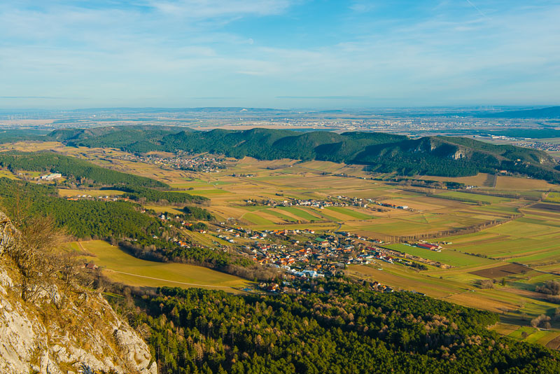Stollhof, behind the Prosset gorge, parts of Winzendorf and Weikersdorf can be seen.