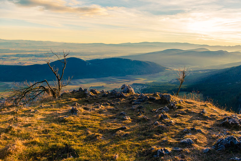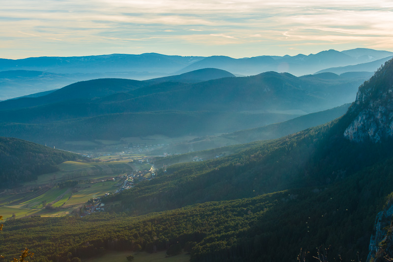 Zweiersdorf and the Wechsel region in the background, the rounded summit in between is the Gösing.