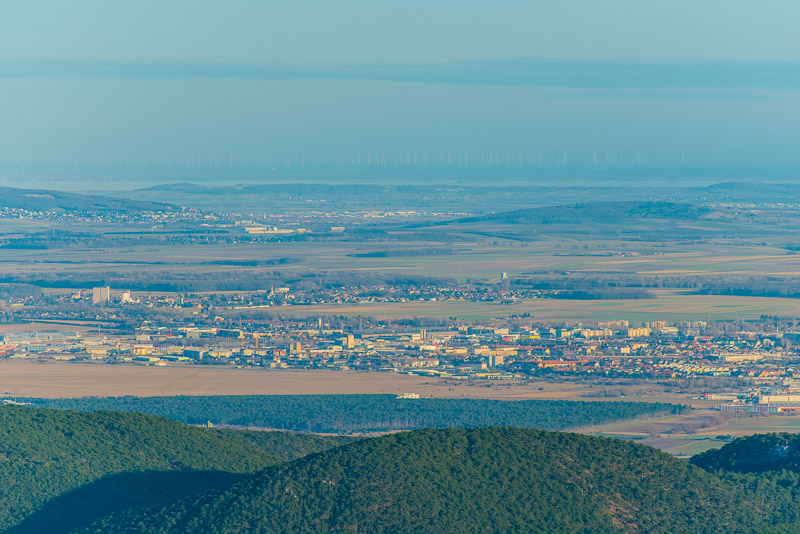 Wiener Neustadt, Theresienfeld and lake Neusiedl in the distance..