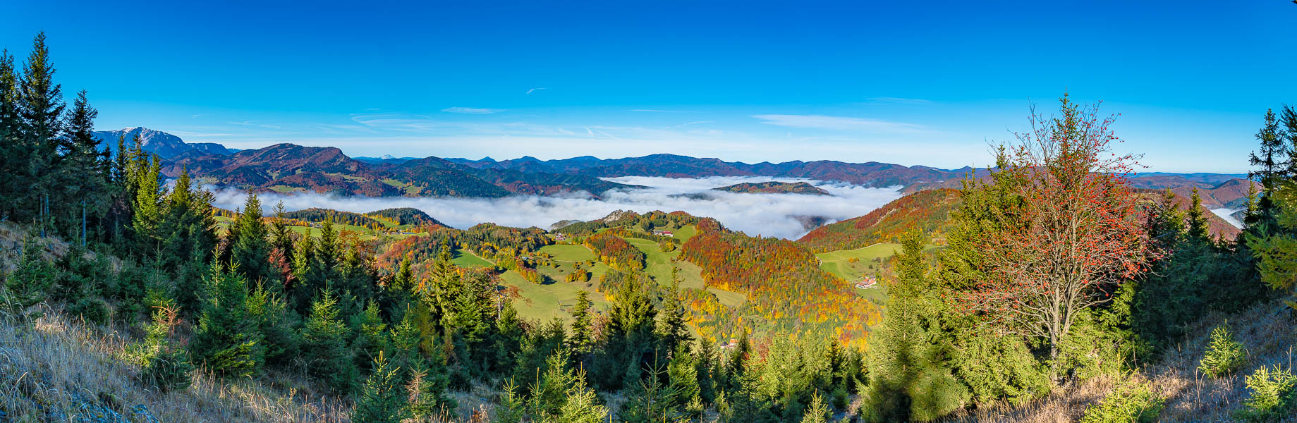 Panoramablick von einer Wiese unweit vom Waldeggerhaus.