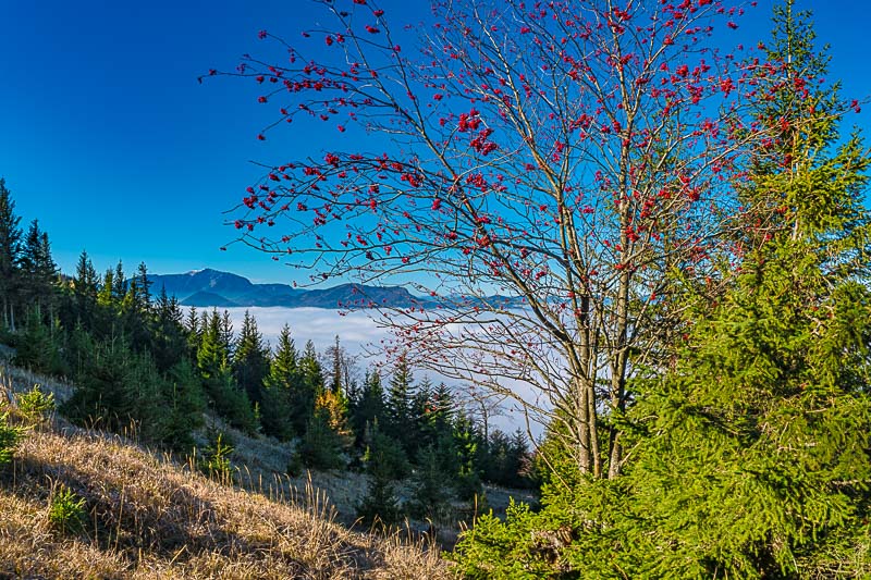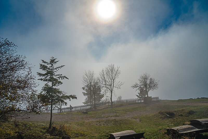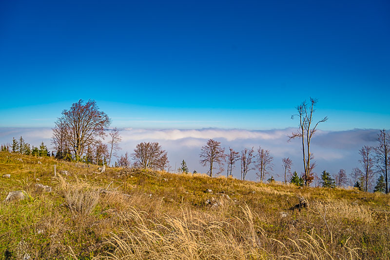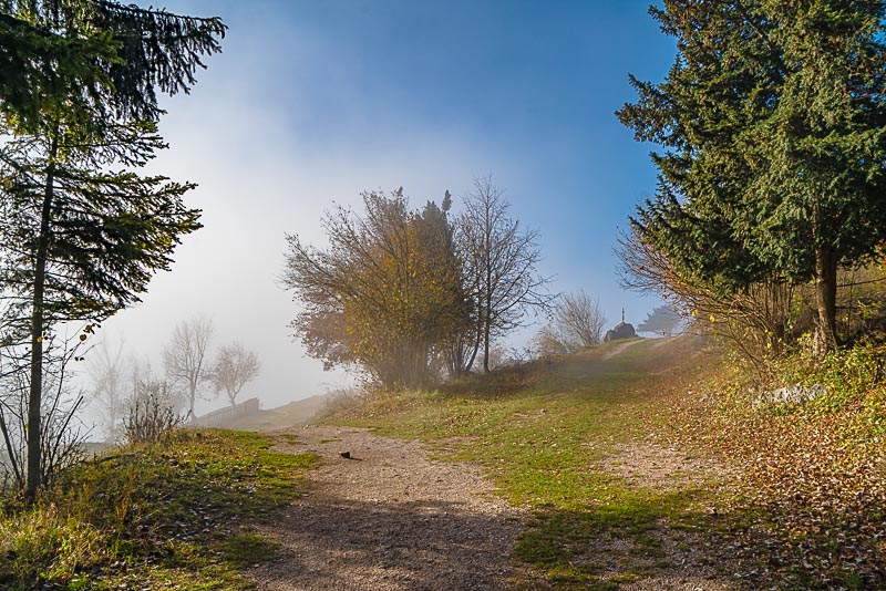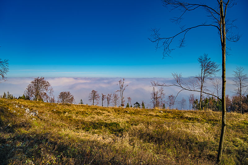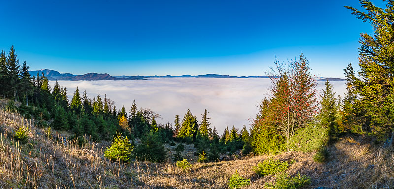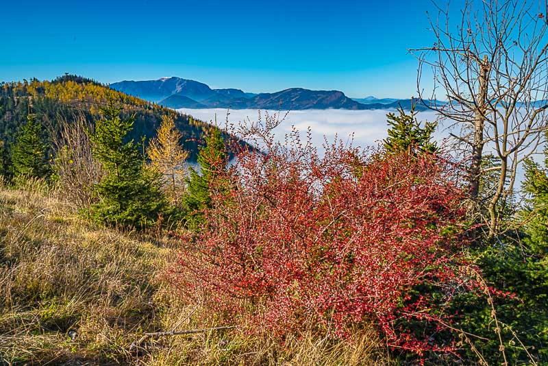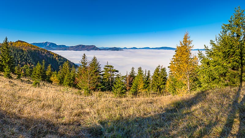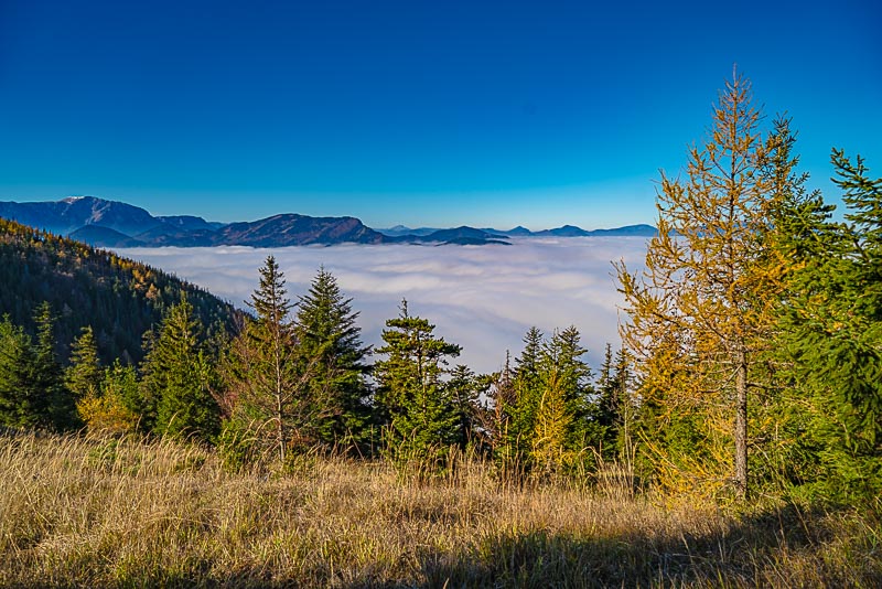 Wieder einmal Nebel über Winzendorf. Ich fahre los Richtung Neue Welt, sehe aber schon bei Gaaden, dass der Nebel ziemlich hoch oben beginnt. Die angedachte Wanderung von Dreistetten zum Herrgottschnitzerhaus würde daher eher im Nebel stattfinden, deswegen biege ich gleich nach der Teichühle ab und fahre die Wandstraße hinauf.
