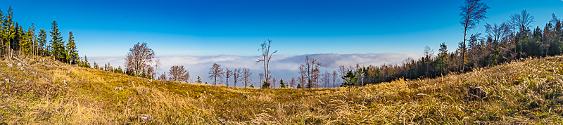 Ich gehe noch ein Stück weiter, den Weg Richtung Große Klause. Hier öffnet sich auf einem Kahlschlag ...