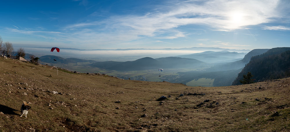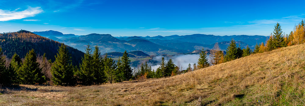 Panoramic picture from the grassland near Almfrieden. Click here or into the picture for a larger display.