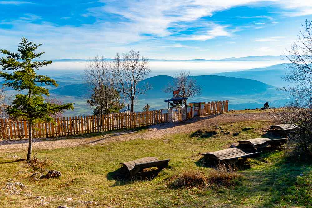 Dense fog over Winzendorf, but the prospect of sunshine higher up. I drive up Hohe Wand to the disused Almfrieden inn, now private property.