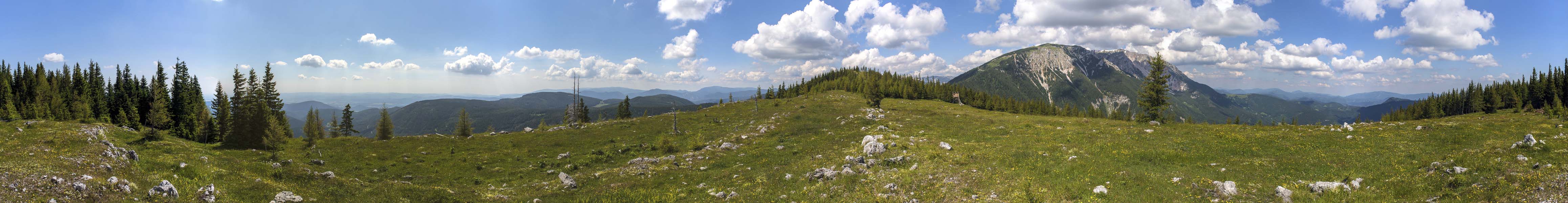 360 Grad Panorama von etwas unterhalb des Gipfels des Hohen Hengst (1.450 m).