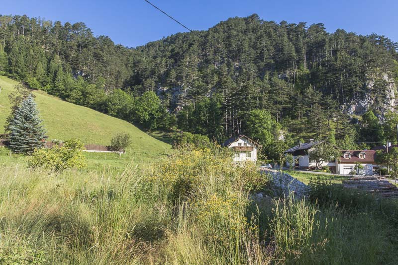 I start from Rohrbach im Graben at 7:10 a.m., my route leads me through the Rohrbachgraben, a not very deep indentation into the slope beginning behind the last of the houses.