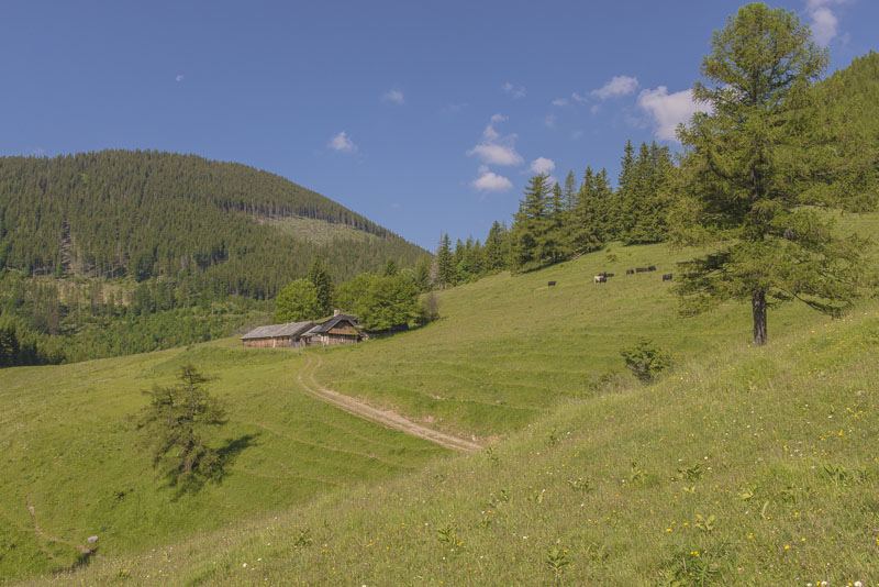 Half way to the Ternitzer Hütte I have to cross an Alpine pasture grassland.