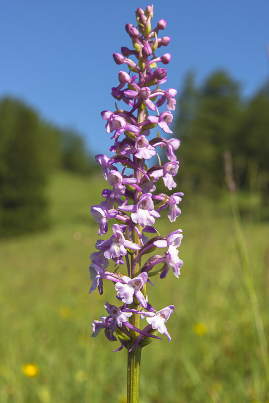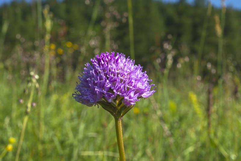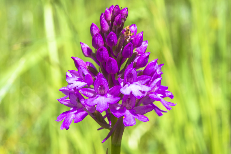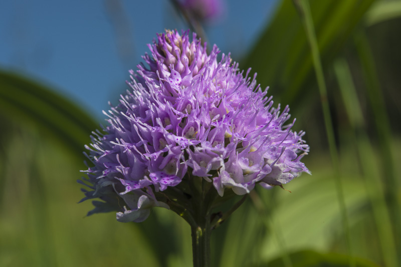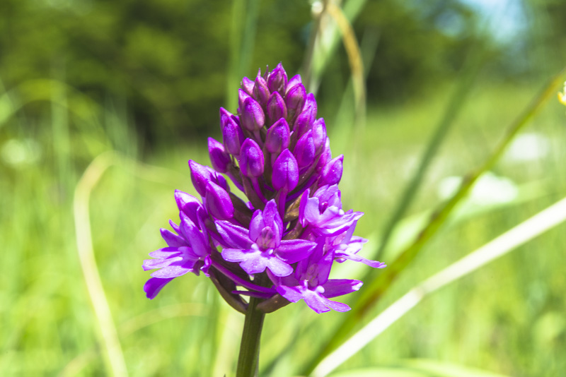 a bit more down, on a grassy hairpin-bend of the road, several exemplars of Pyramidal orchid (Anacamptis pyramidalis).