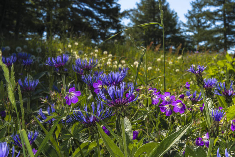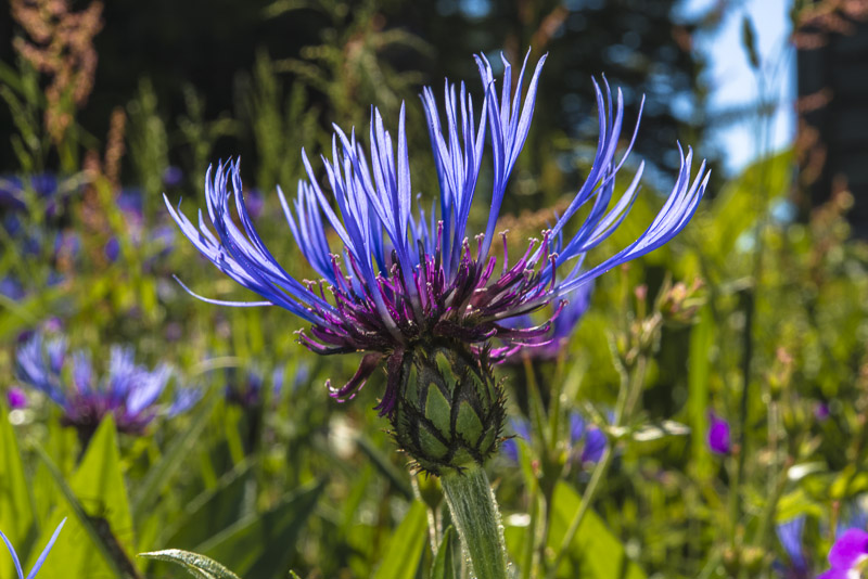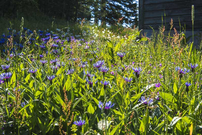 Behind the hut (in the picture above to the right) huge lots of Mountain Cornflowers (Centaurea montana) ...