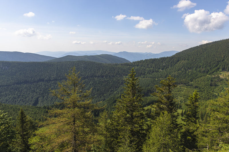Deforestation by gales or cutting down has freed the summit of Hoher Hengsts (1.450 m), so now ther eis a good view to Schneeberg.