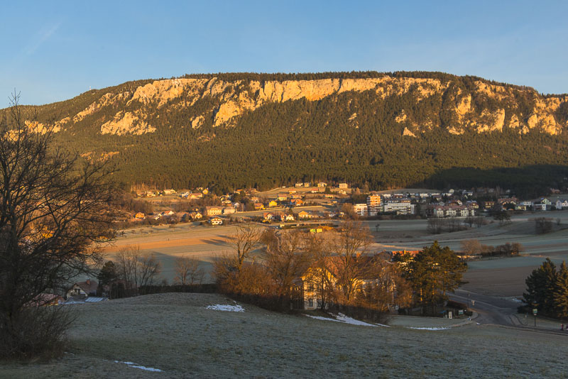 In the foreground, behind the snow banners, the pilgrimage church of Höflein, where I took my first pictures this morning.