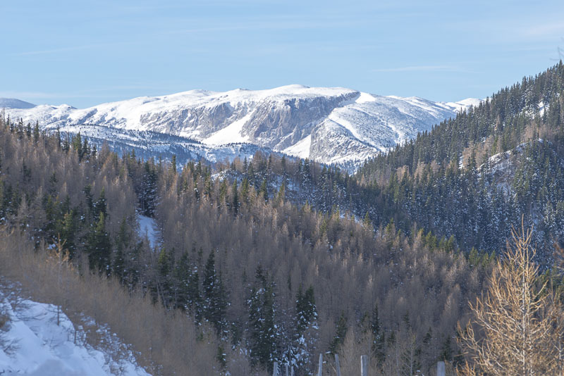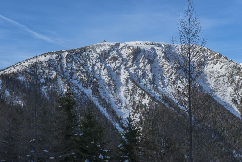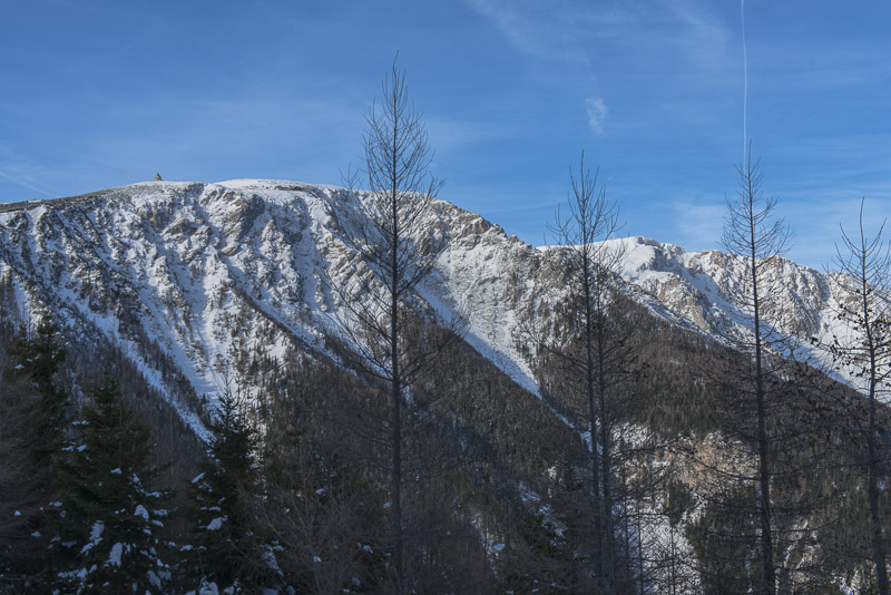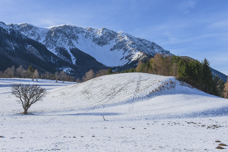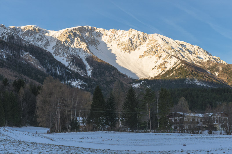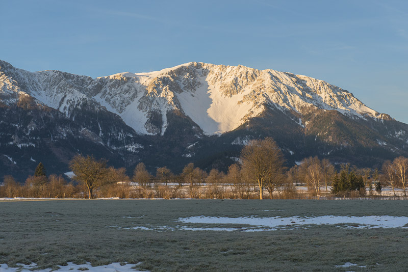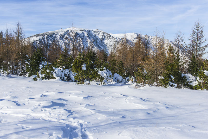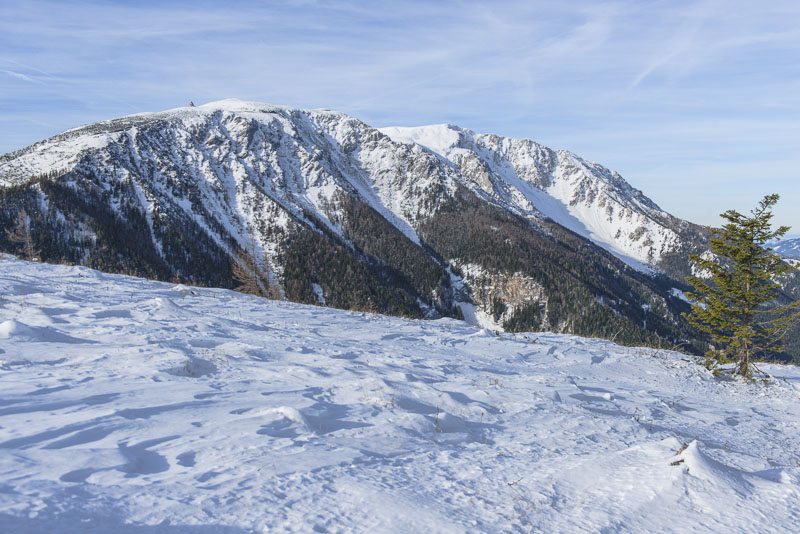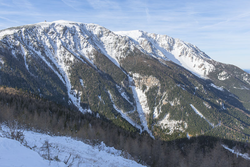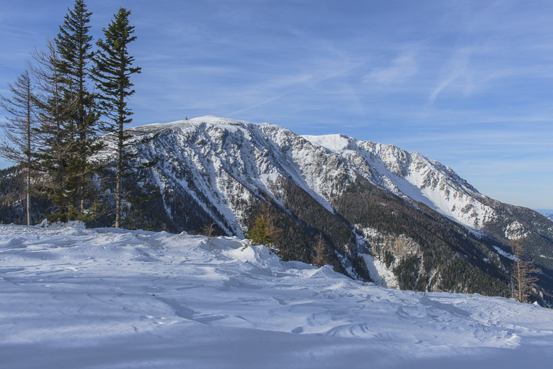 ... and carries rests of recent snow. The wooded ridge far left is Hoher Hengst. It nearly looks higher than Schneeberg from this point of view, but it is much more in front - and 600 m lower in altitude.