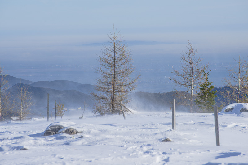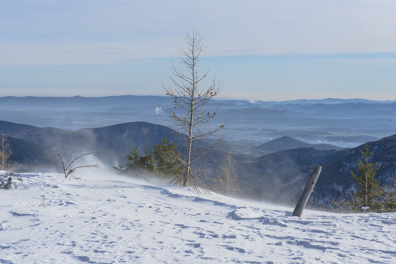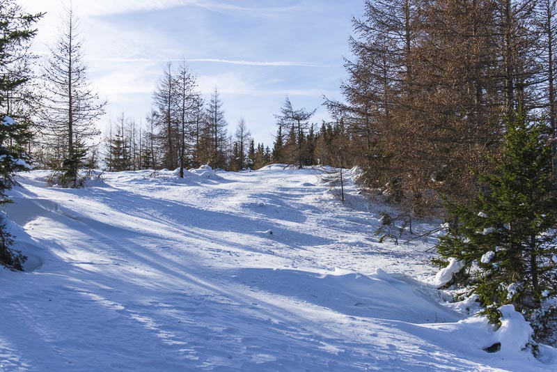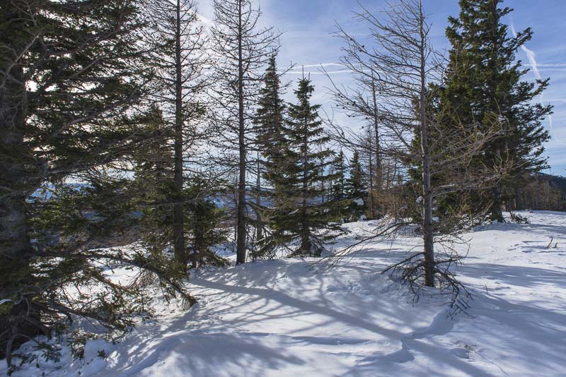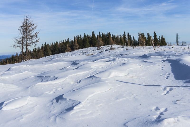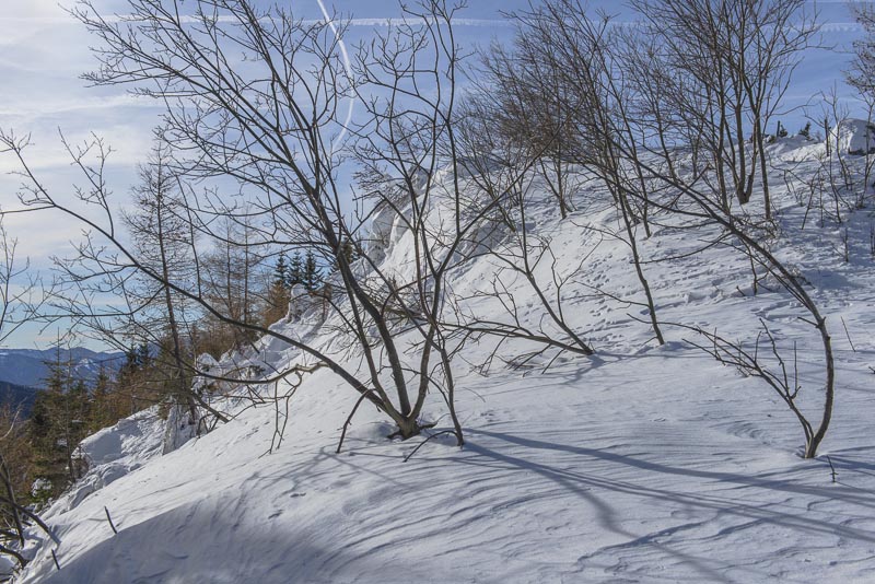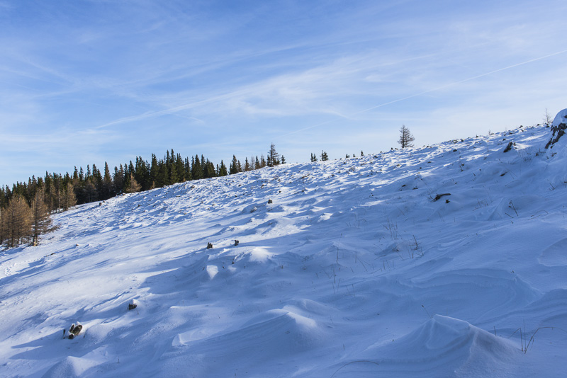 I take on the snow shoes I´ve carried up in my rucksack and stump through the deep and wind drifted snow up the smooth summit ridge of Hoher Hengst.