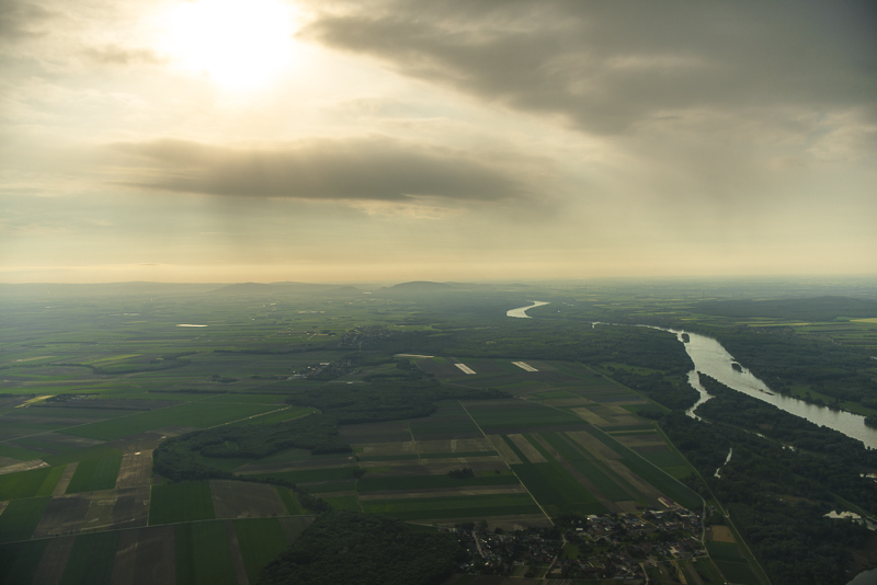 Abflug von Wien zeitig in der Früh, Startbahn Nummer 2: es geht gleich einmal über die Donau.