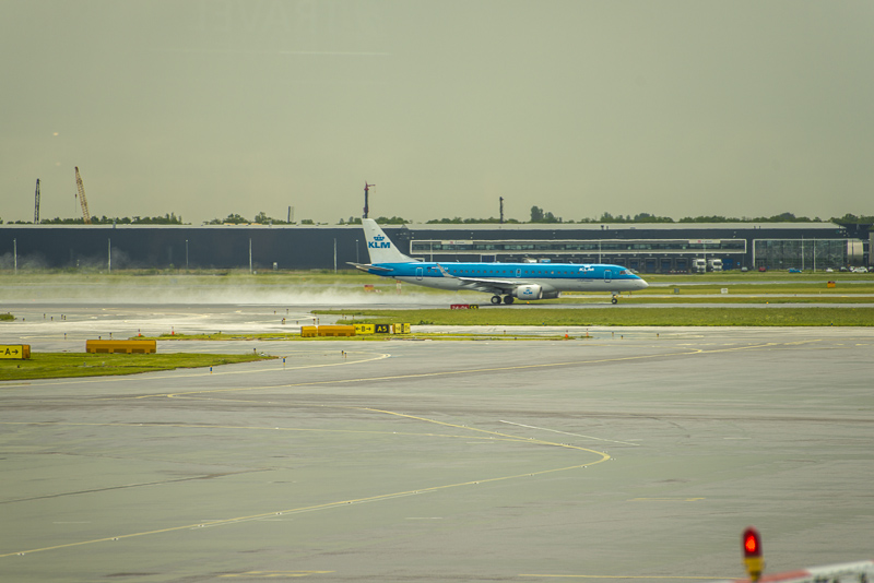 Drei Stunden Wartezeit. Draußen hat es zu regnen begonnen, startende Flugzeuge ziehen lange Regenfahnen hinter sich her.