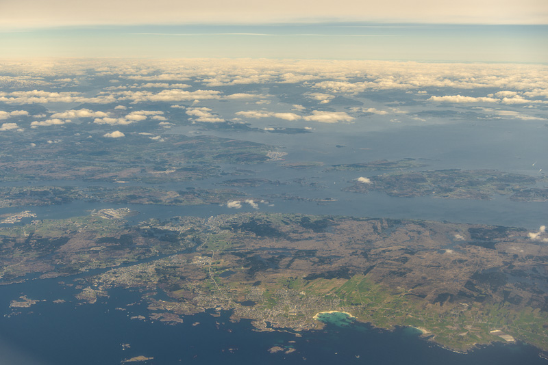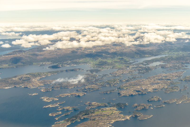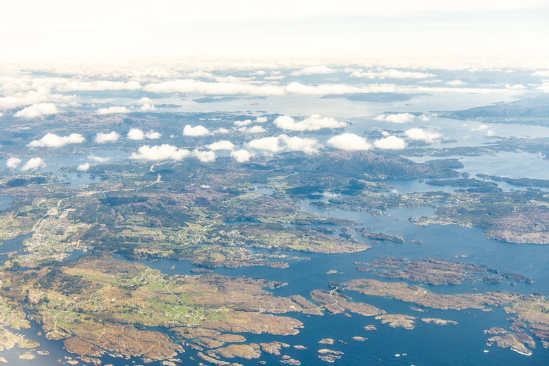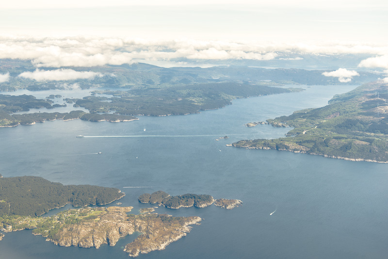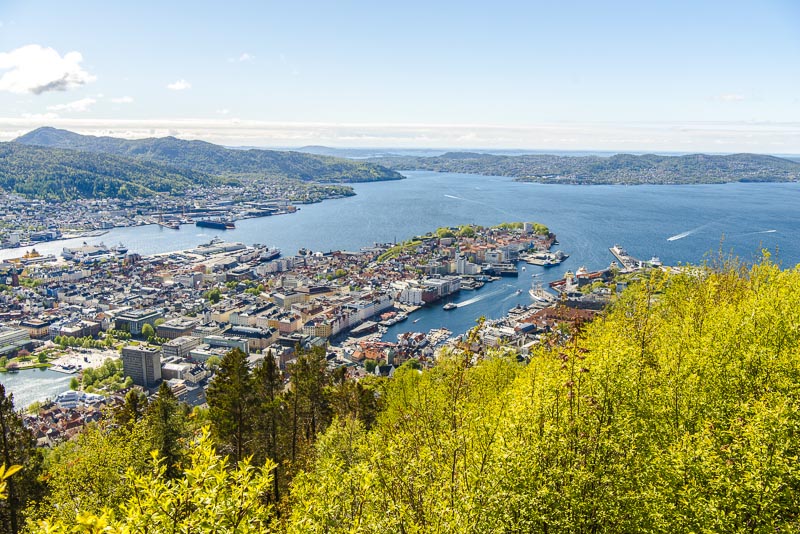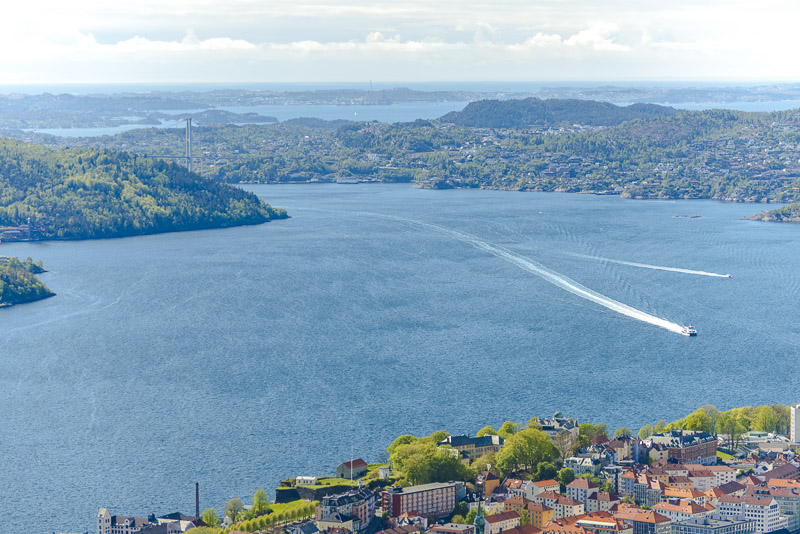 Blick hinaus auf die verschlungene Fjordlandschaft vor Bergen.