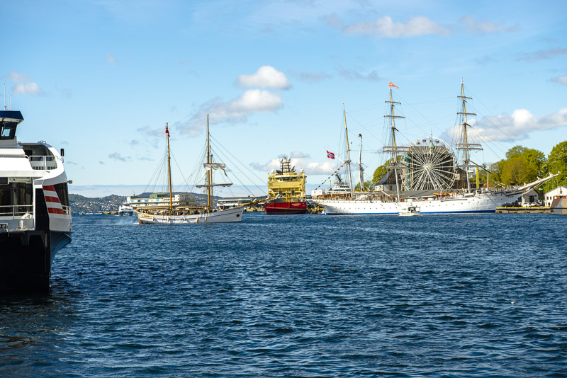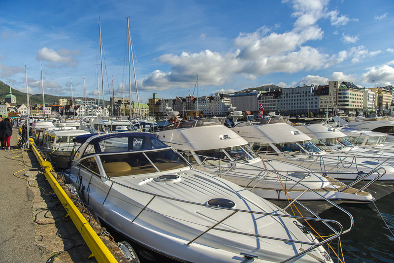 Wir lassen unser Gepäck beim Terminal und machen einen Spaziergang zum Haupthafen von Bergen.