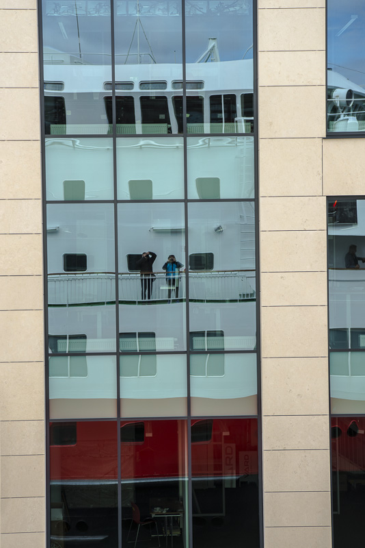 Das Schiff legt an - und wieder einmal eine Spiegelung.