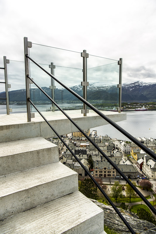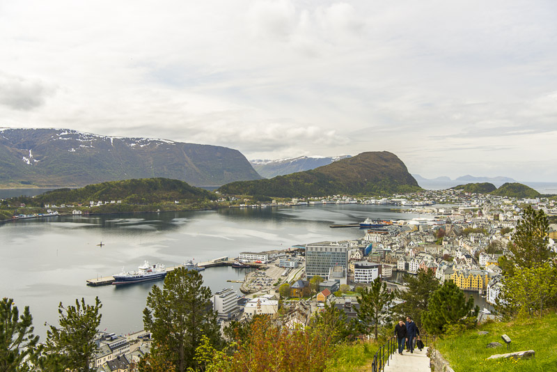 Panorama von Ålesund - auf halber Höhe zum Aksla - Felsen. Hierher oder ins Bild klicken für eine größere Darstellung.