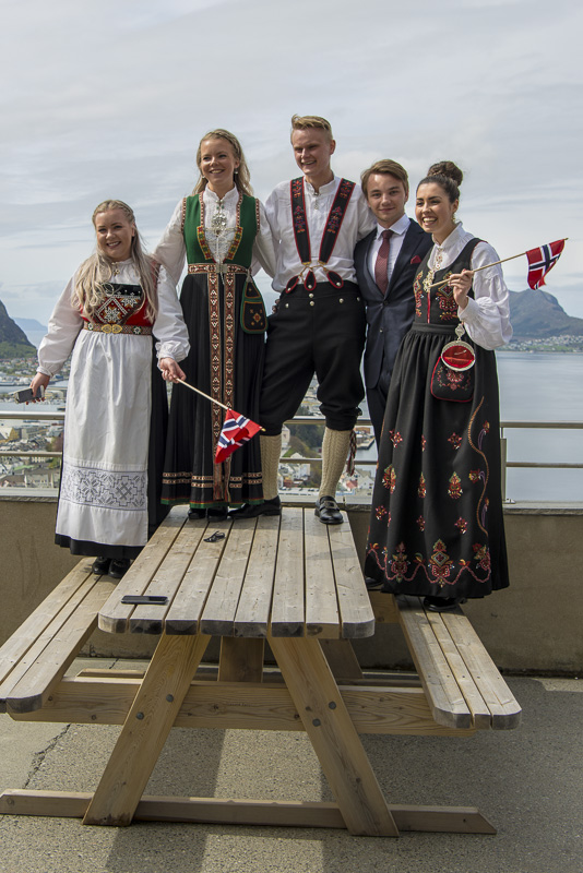 Eine Grupper junger Norweger posiert auf dem Tisch - und wir schließen uns mit Fotos an.