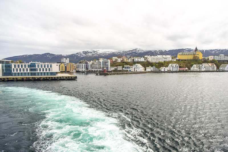 Zurück in der Stadt. Der Ålesundet hat der ganzen Stadt schließlich den Namen gegeben. Während Fjorde Einschnitte ins Land sind, versteht man unter einem Sund eine Wasserstraße zwischen Festland und Inseln oder zwischen Inseln. Insofern fährt unser Schiff fast nur durch Sunde, nicht durch Fjorde.