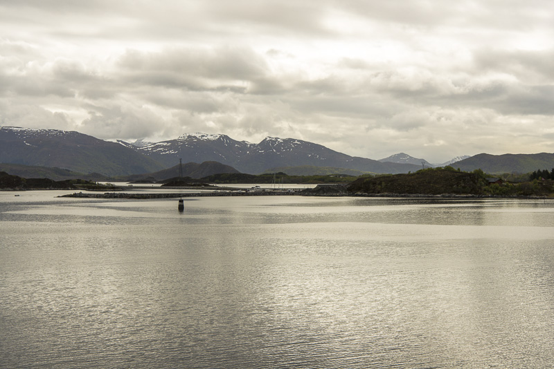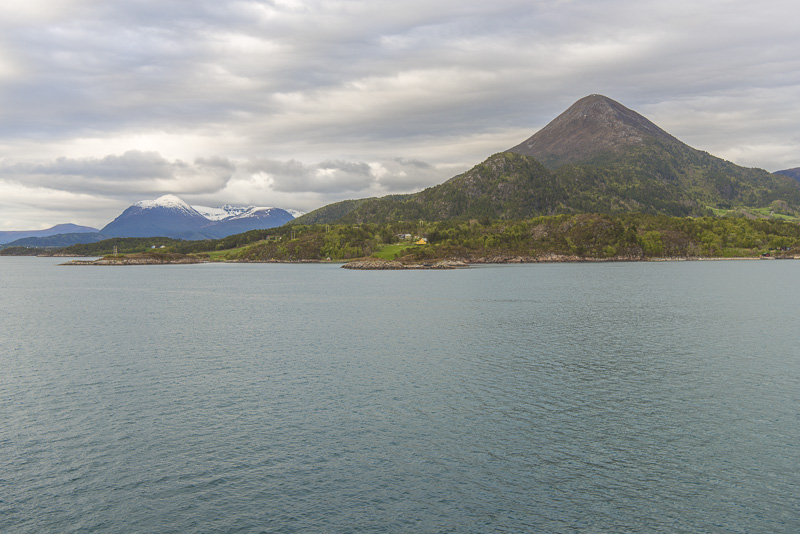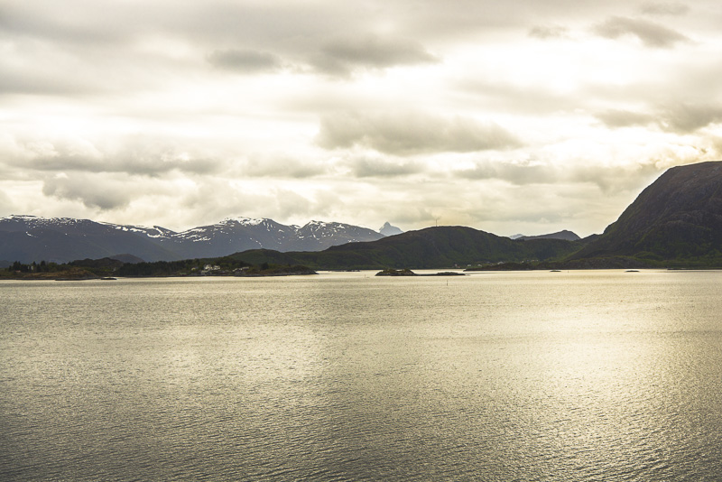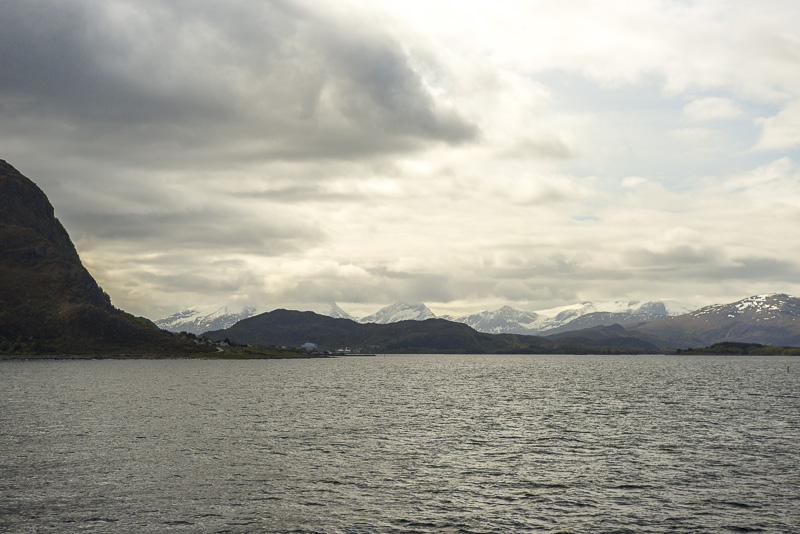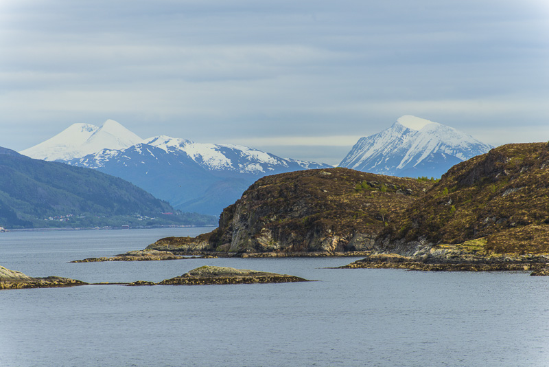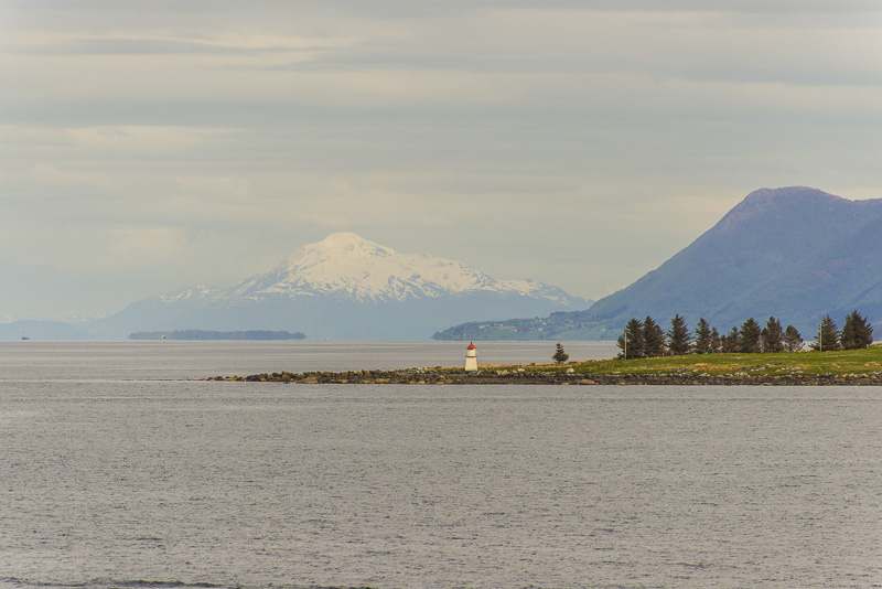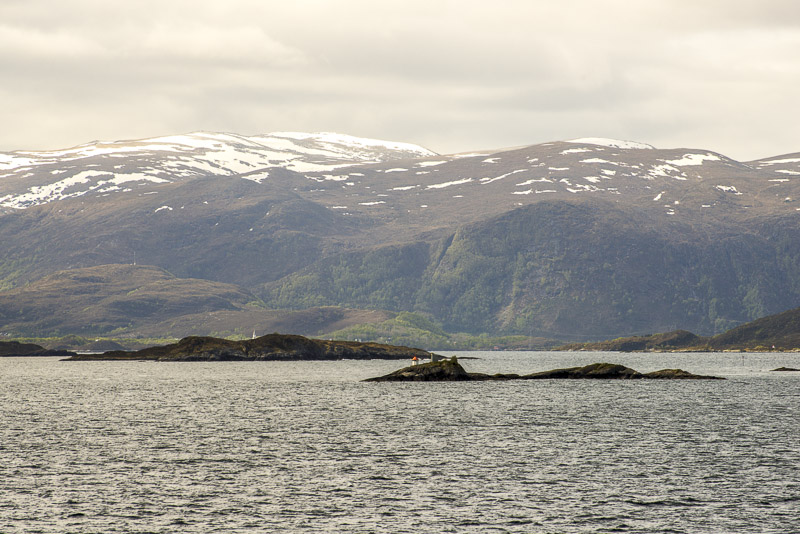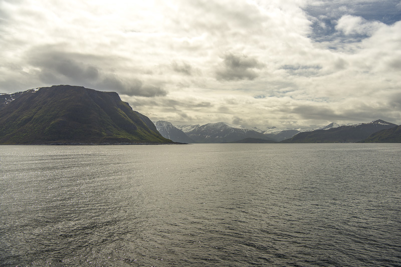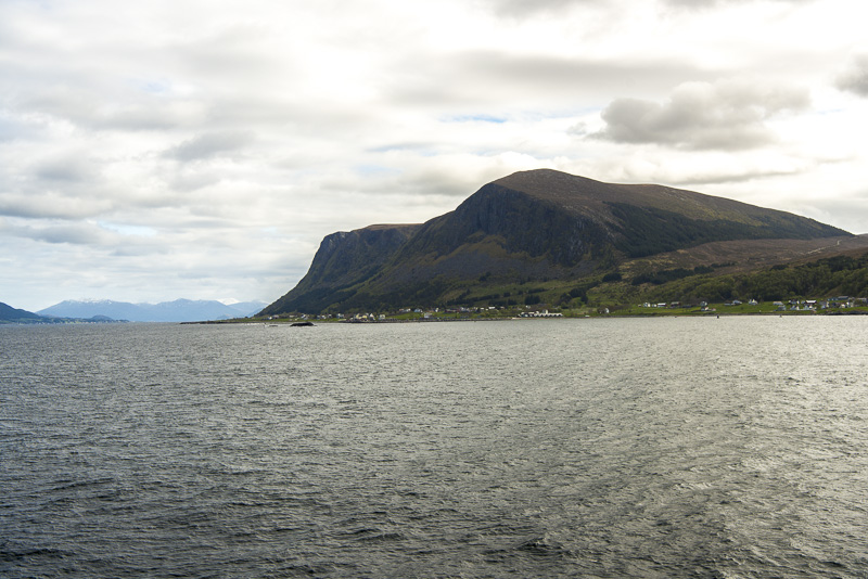 Rückblick zum Midfjorden. Rechts die Insel Otrøya mit dem Oppstadhornet (737 m).