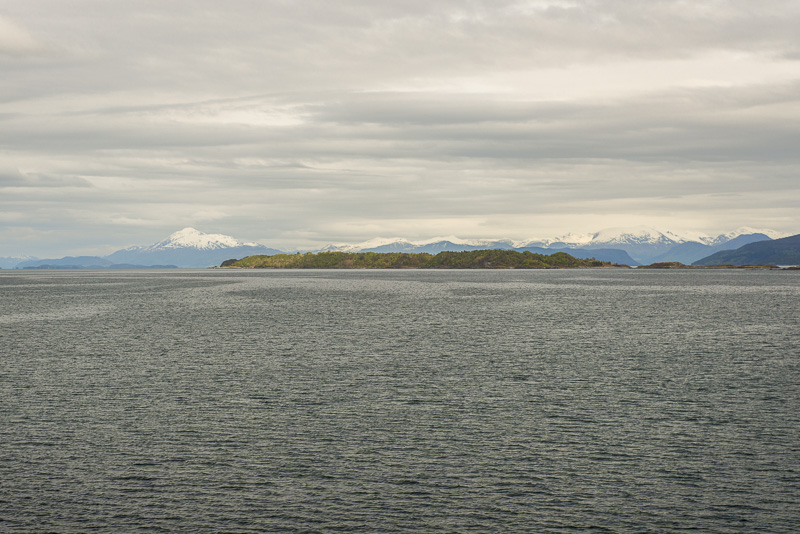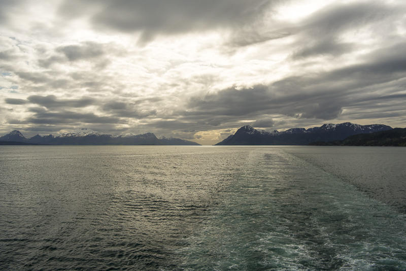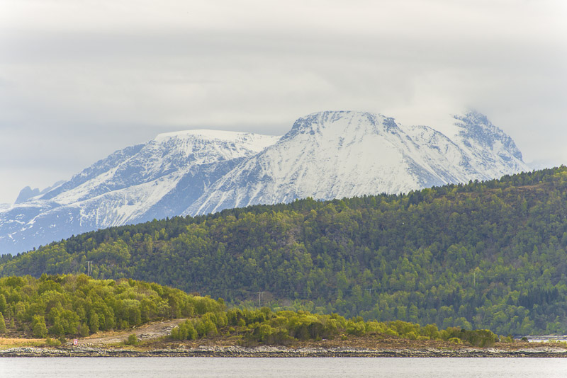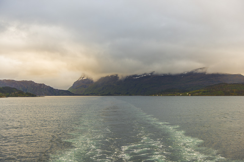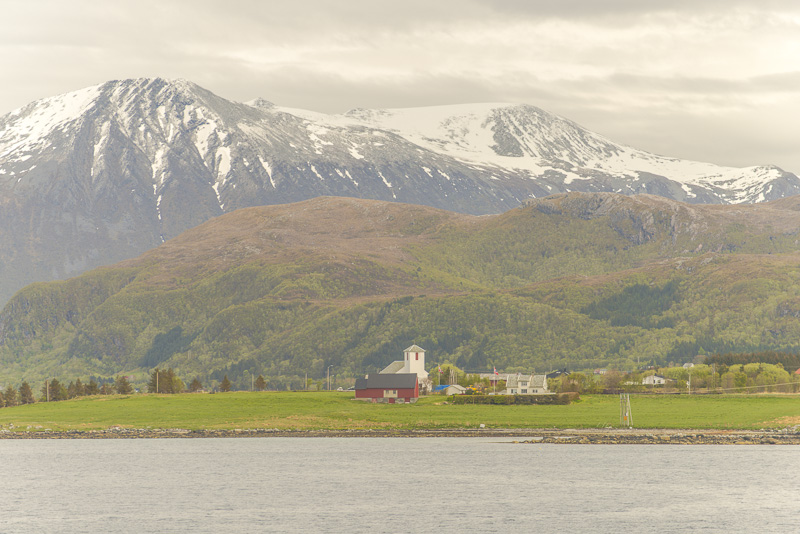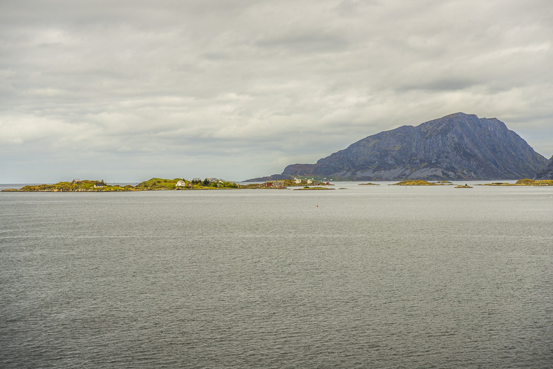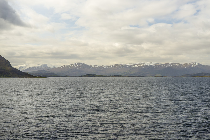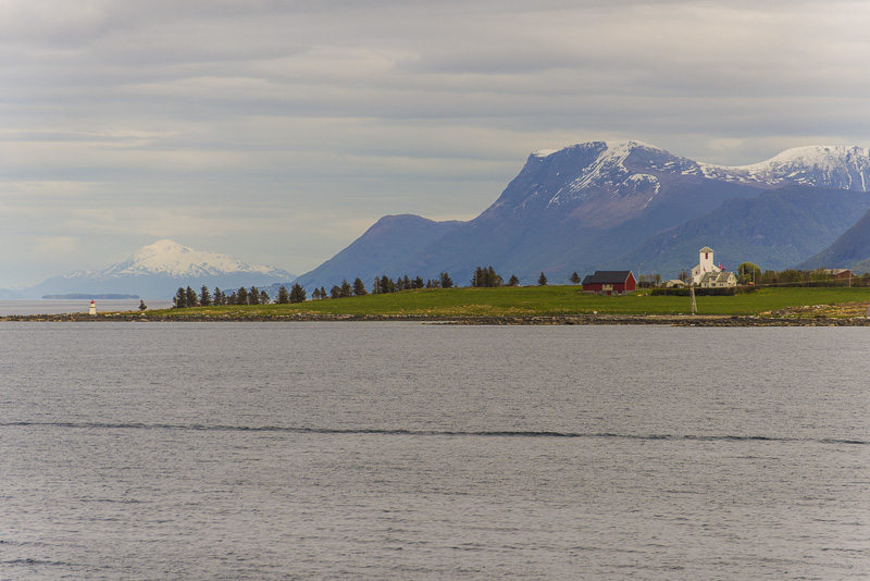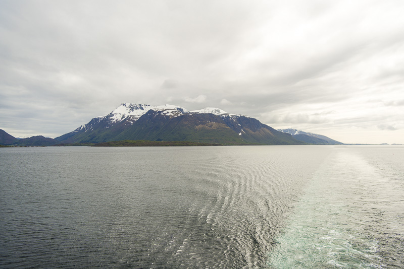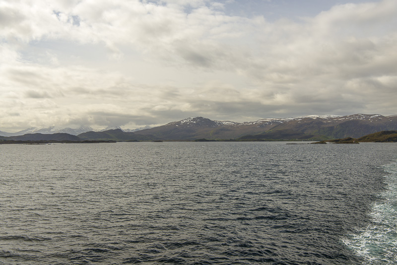 Rückblick zum Midfjorden. Rechts die Insel Otrøya mit dem Oppstadhornet (737 m).