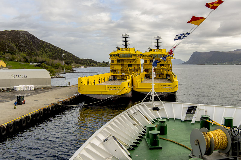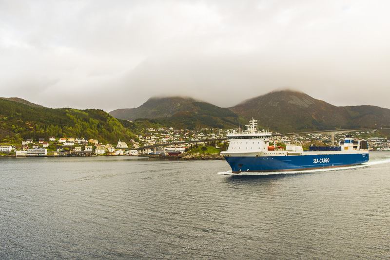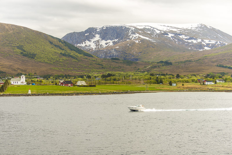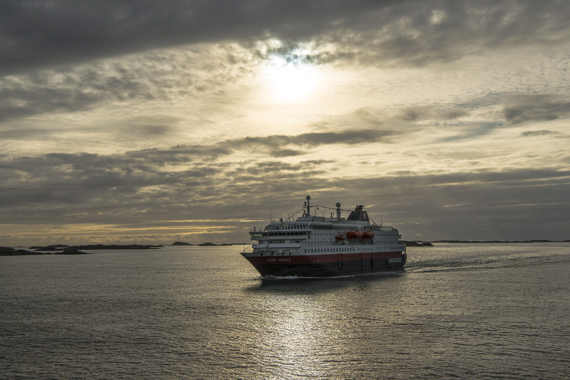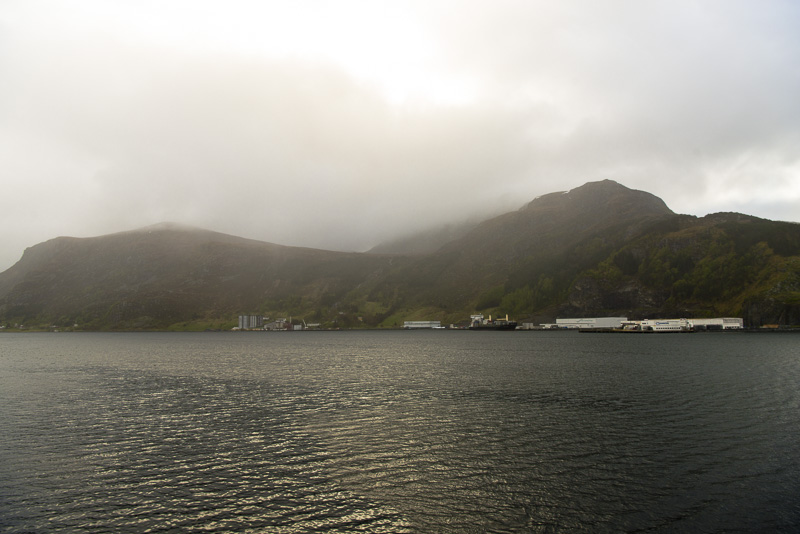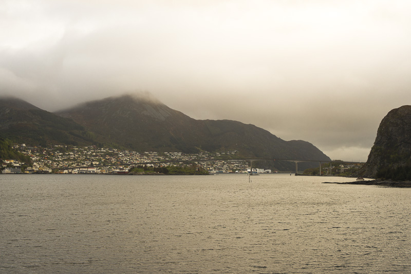 Ich komme gerade an Deck, wie wir uns Maløy nähern.