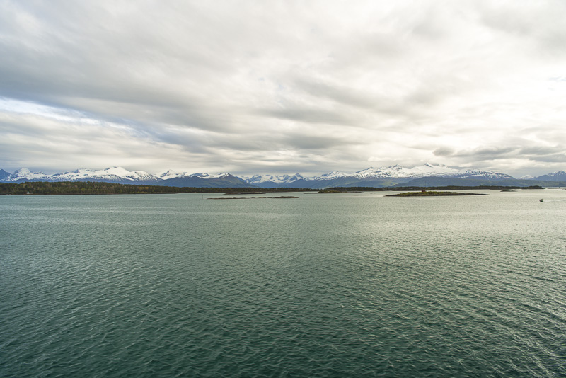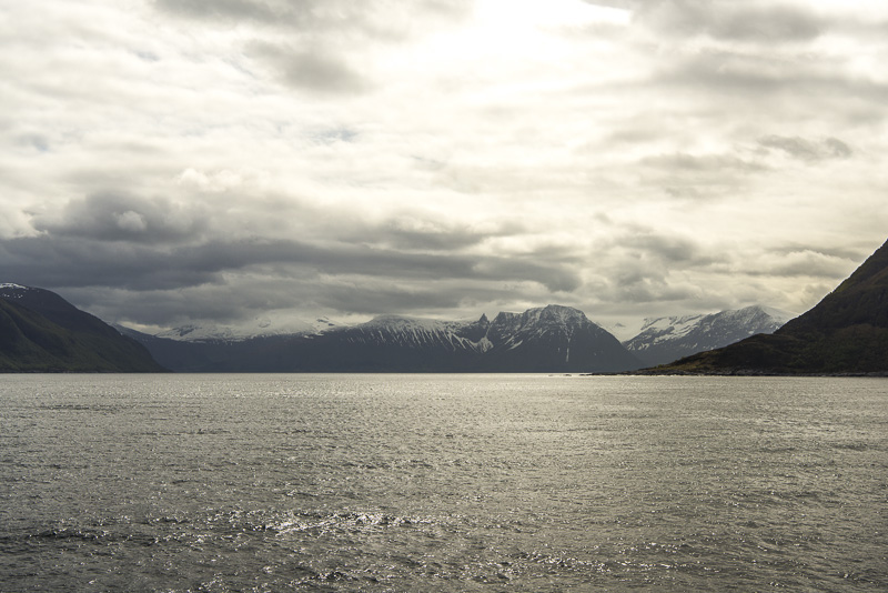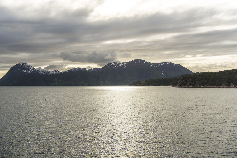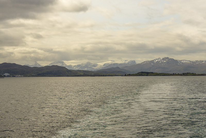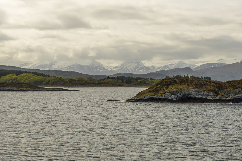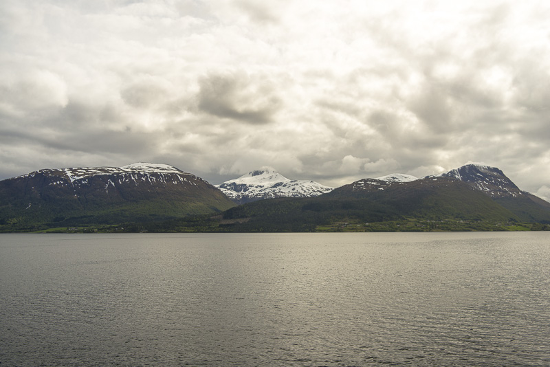 Im Osten jetzt hohe Berge - diese Bergkette werden wir dann in Molde von der anderen Seite sehen.