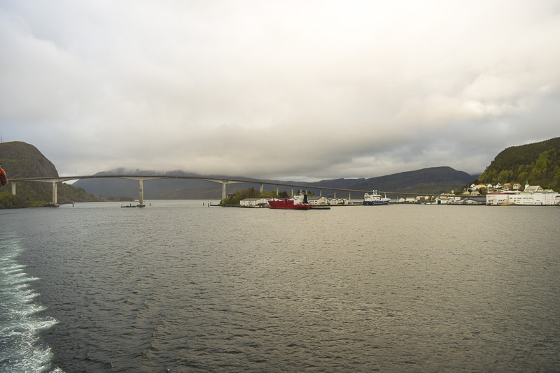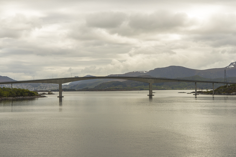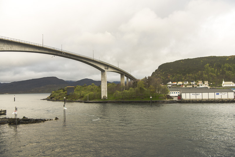 Die Brücke von Ulsteinvik (im Hintergrund) zur Insel Linøya.