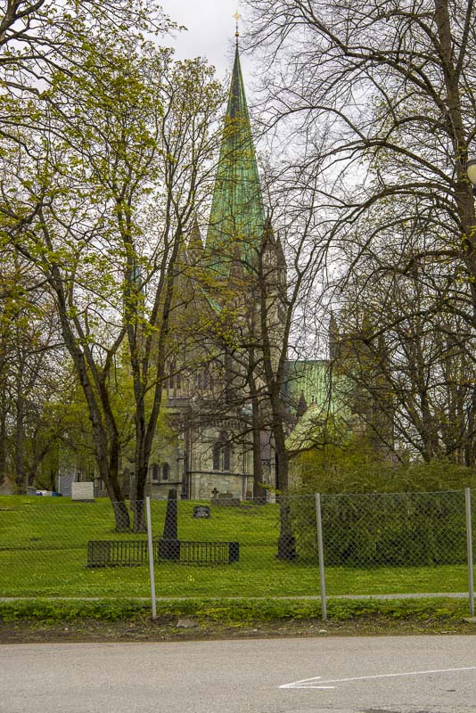 Der Nidarosdom. Heute gehen wir nicht hinein, wir heben uns das für die Stadtrundfahrt auf unserer Rückreise auf.