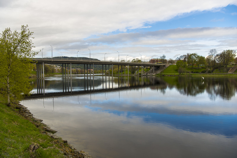Zwischendurch kann man aber immer wieder mal zum Fluss hinunter. Im Hintergrund die Bakke Bru.