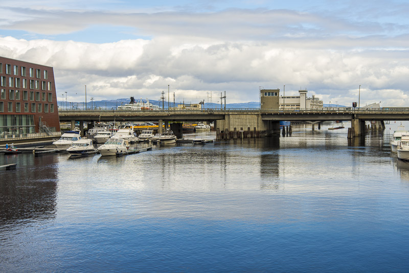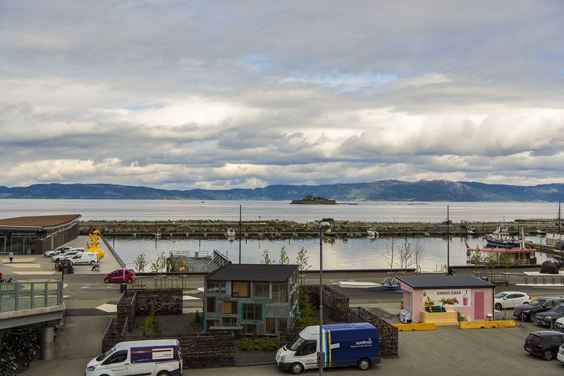 Wir gehen wieder über die Brücke über den Bahnhof - von hier hat man einen schönen Blick auf den Trondheimfjord.