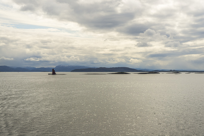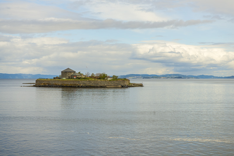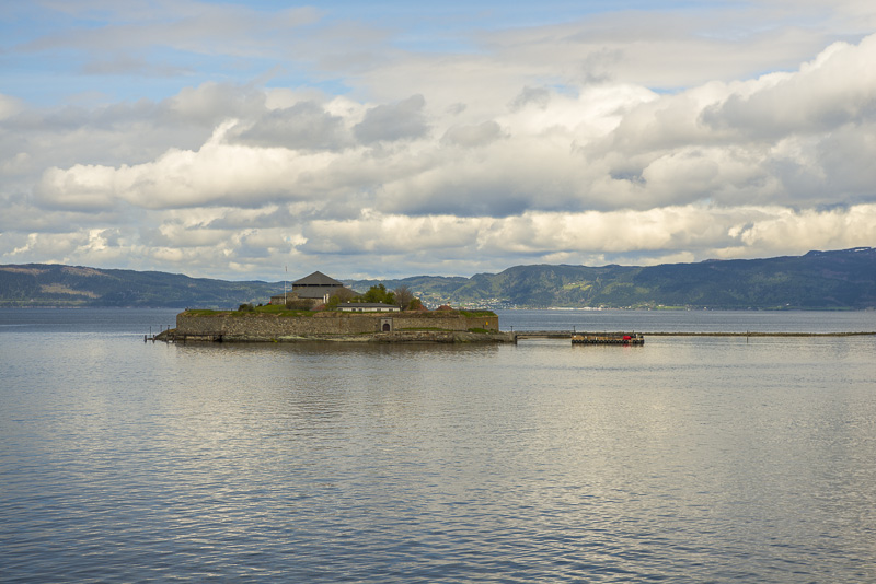 Die Klosterinsel Munkholmen, heute ein Freizeitareal. Wir fahren jetzt den Trondheimfjord nach Westen und dann nach Norden.