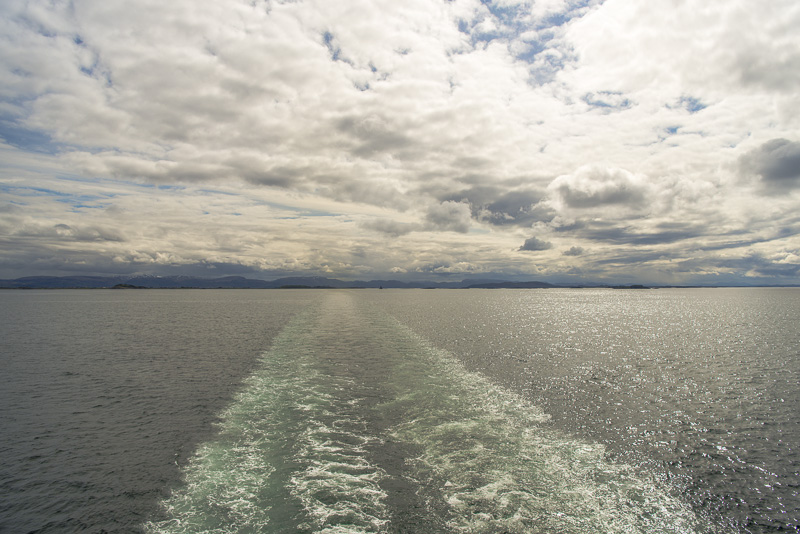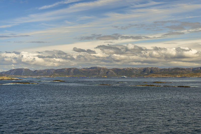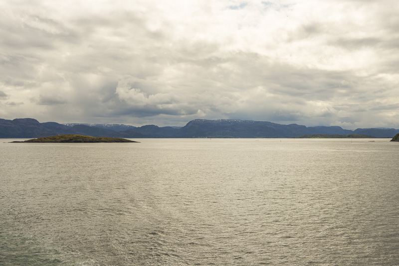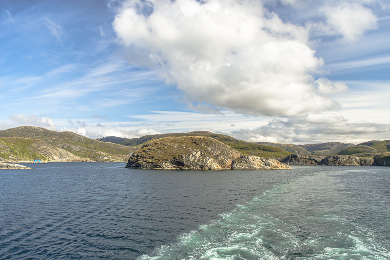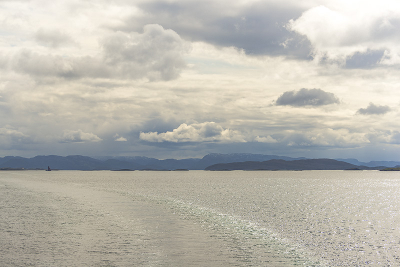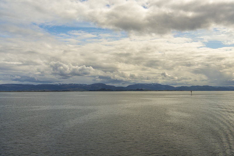 Wir sind jetzt zum leckeren Mittagsbuffet essen gegangen. Um 14:27 bin ich zurück auf dem Deck. Fahrt durch den Trondheimfjord, bzw. jetzt bereits die Küste entlang