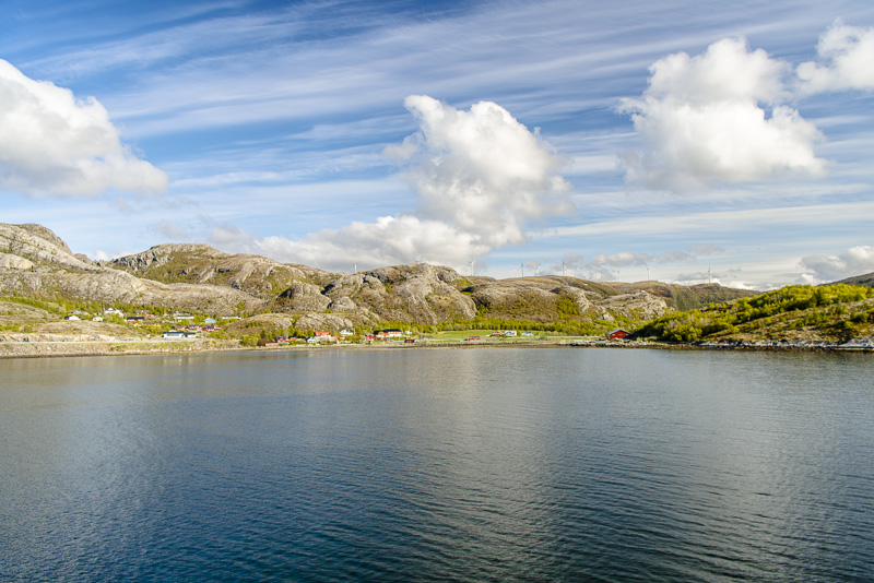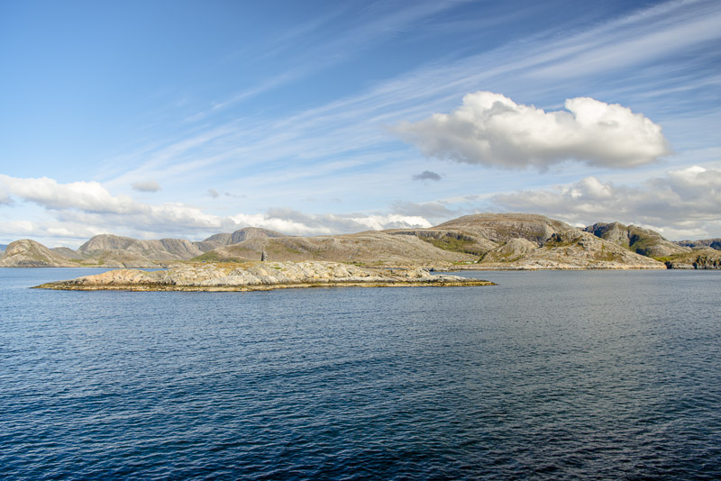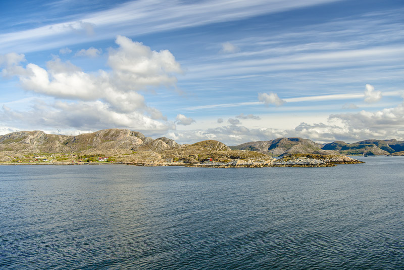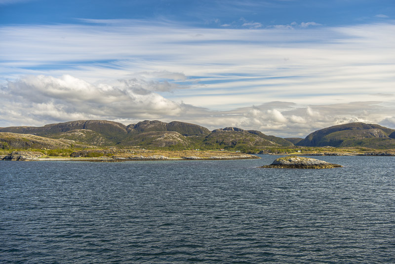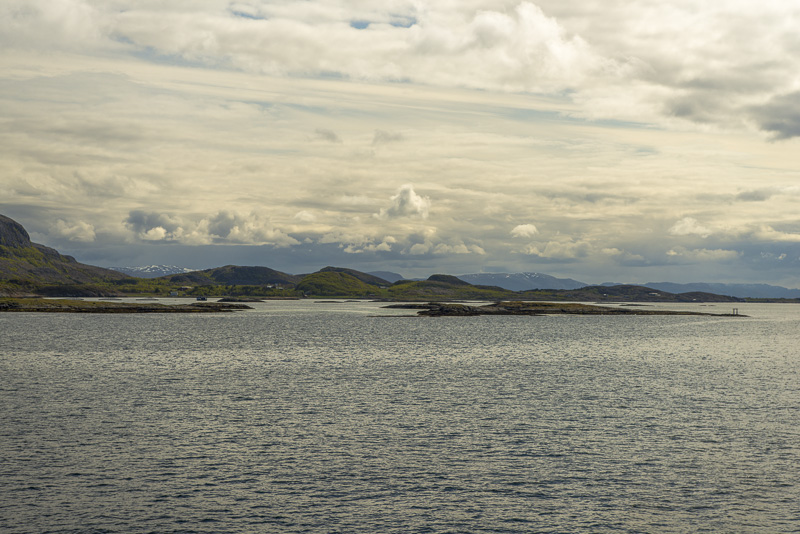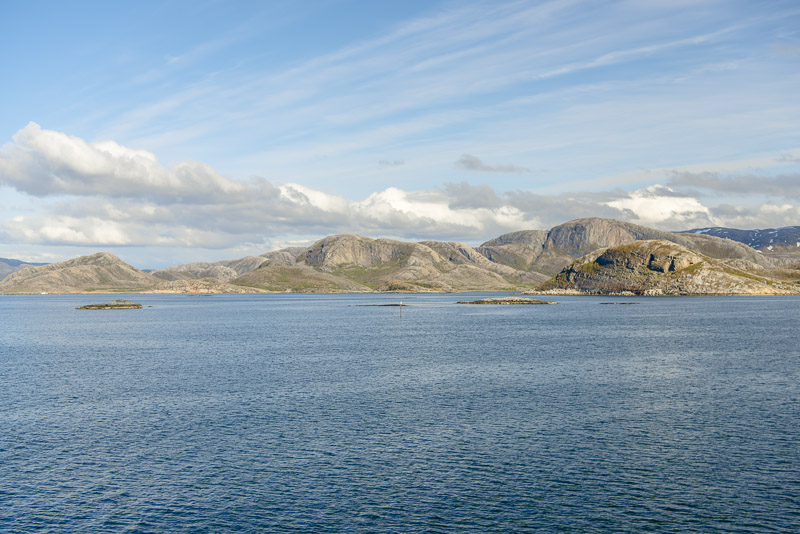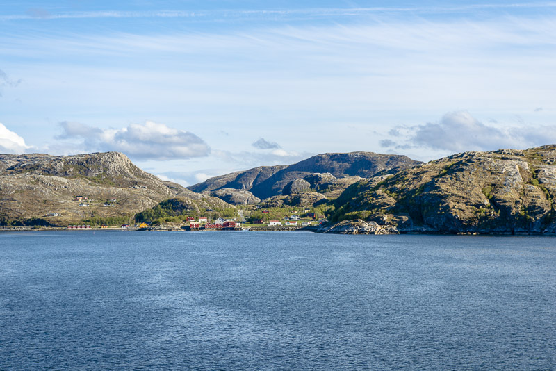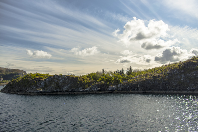 Die Gegend heißt (laut Karte) Tarvafjorden., danach Linesfjorden. Weiter draußen viele flache Schären, im Land Berge bis zu einige 100 Meter.