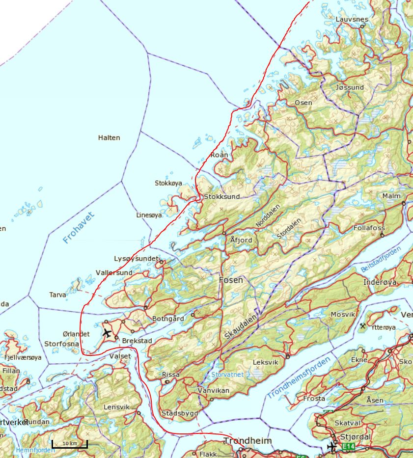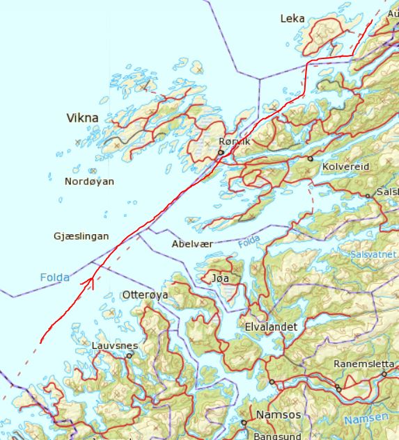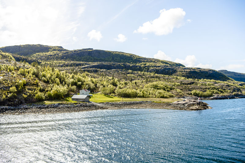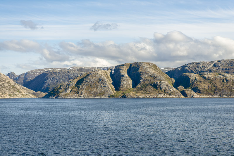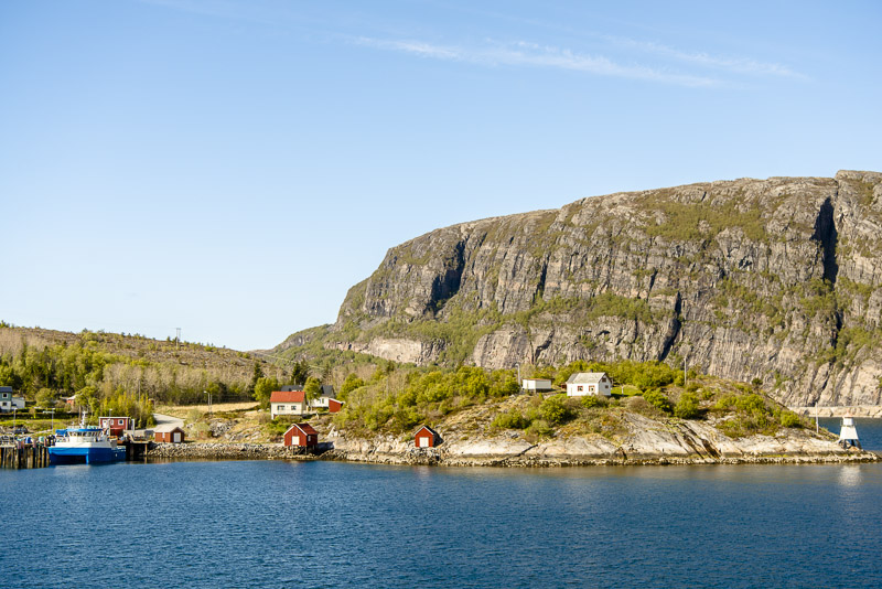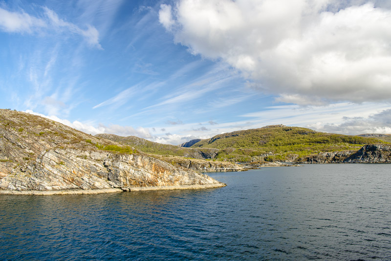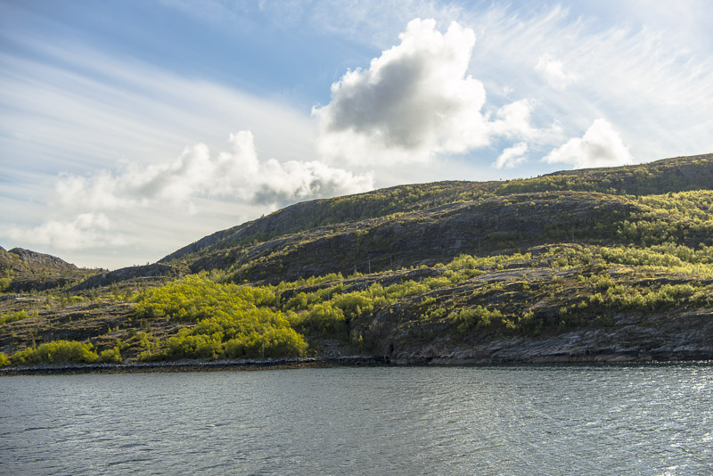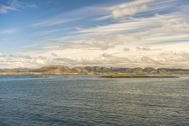 Die Gegend heißt (laut Karte) Tarvafjorden., danach Linesfjorden. Weiter draußen viele flache Schären, im Land Berge bis zu einige 100 Meter.