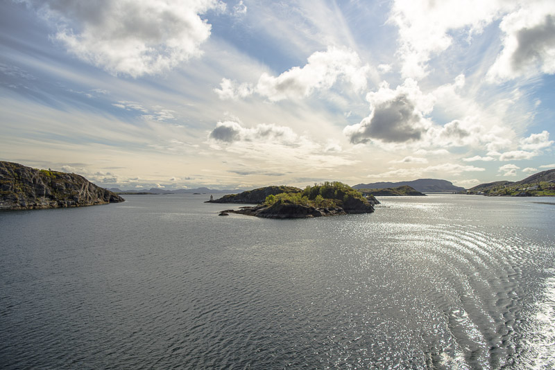 ... durch den engen Stokksund. Kaum zu glauben, dass ein so großes Schiff hier durchkommt.