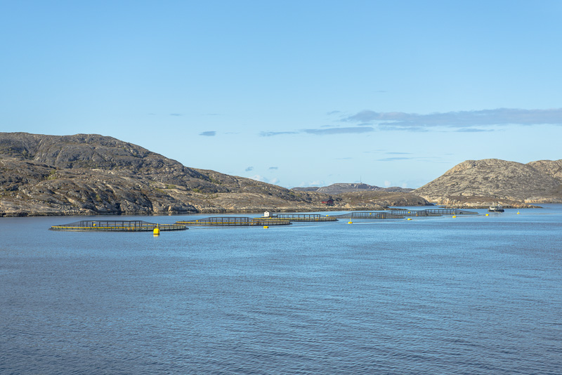 Fischzucht sieht man hier immer wieder, hauptsächlich Lachse, wie man uns erklärt.