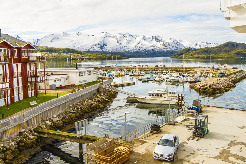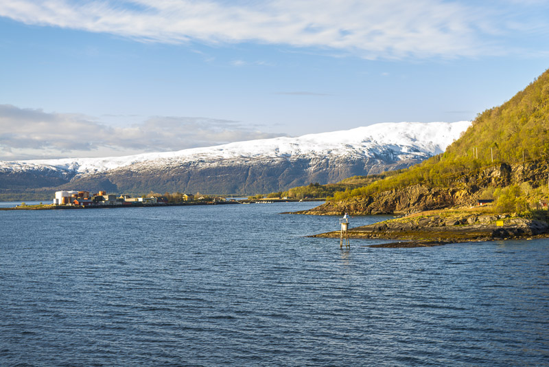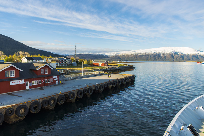 Wir biegen ein, um in Ørnes anlegen zu können. Unser Schiff legt immer mit der Backbordseite (linken Seite) an.