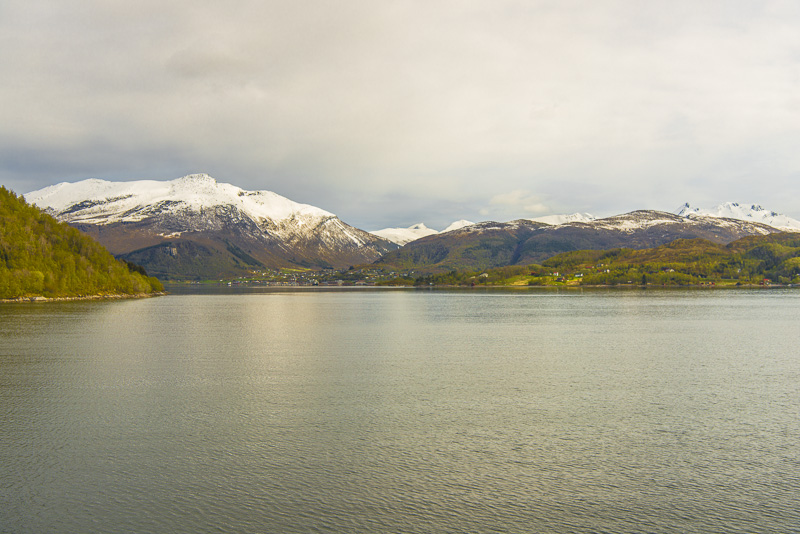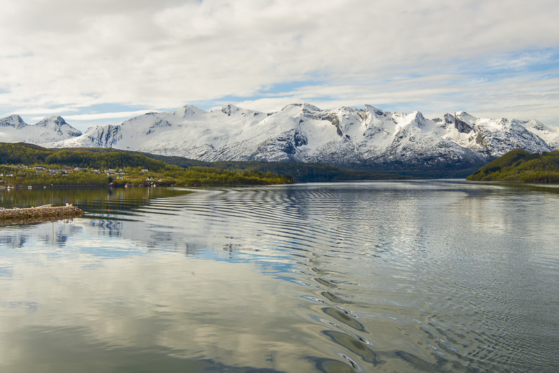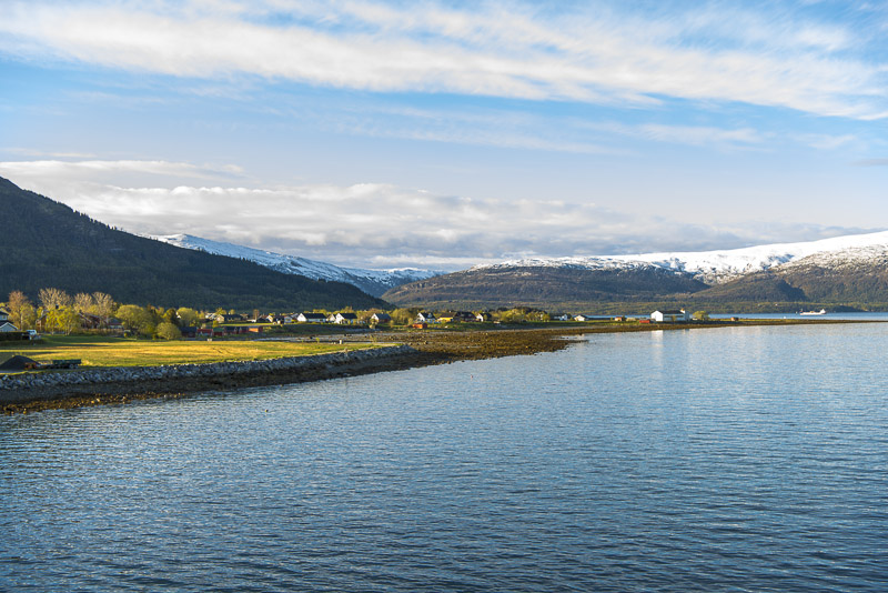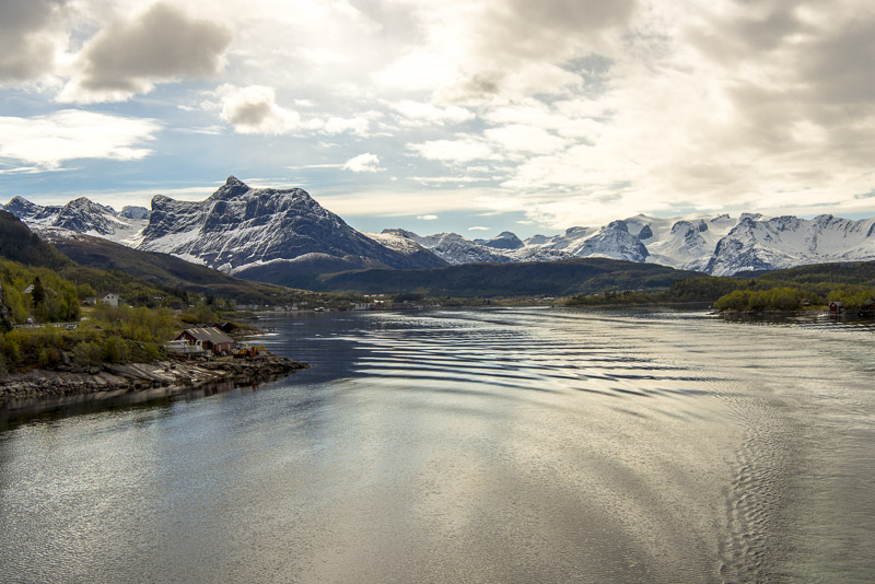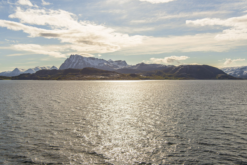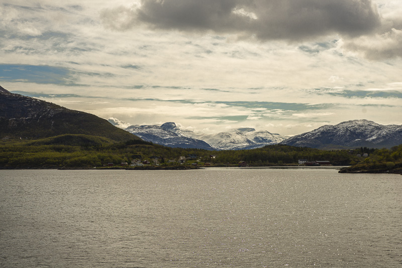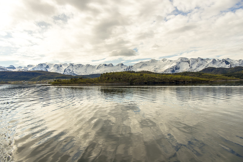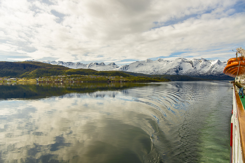 ... jenseits des Saltfjorden. Vor uns die nächste Anlegestellen, Bodø.