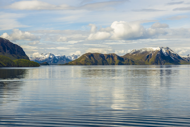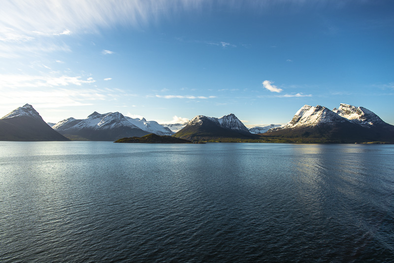 Blick zurück zur Halbinsel Meløy, um die wir gerade herum gefahren sind.