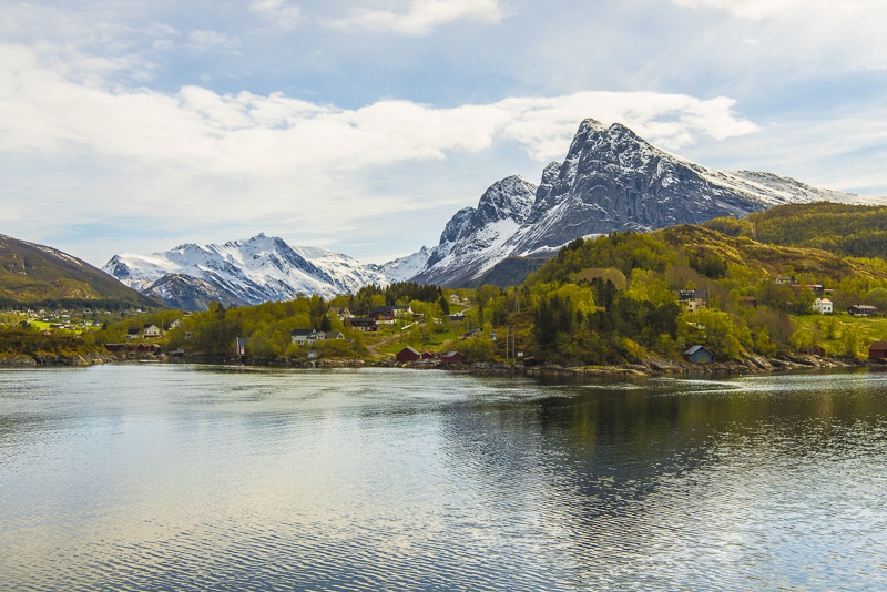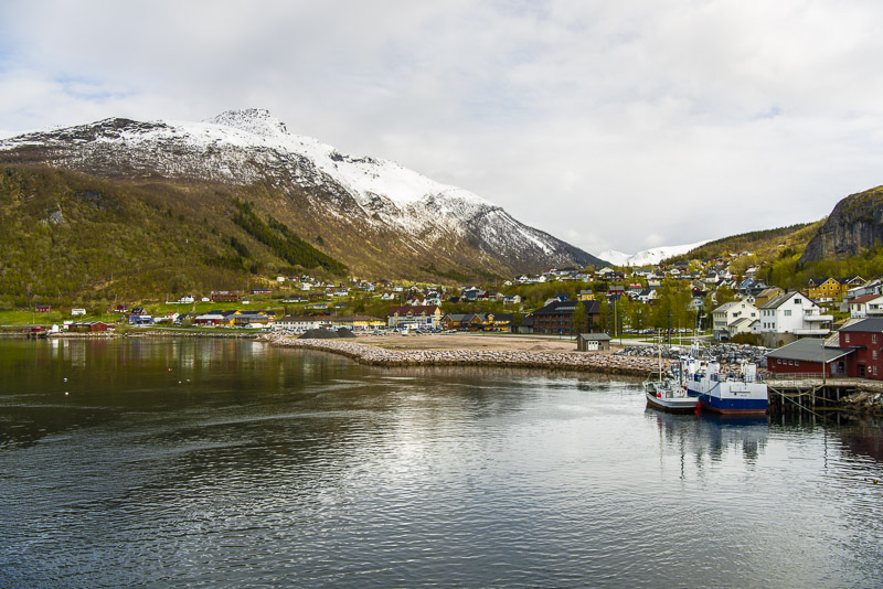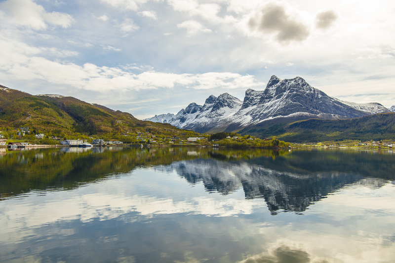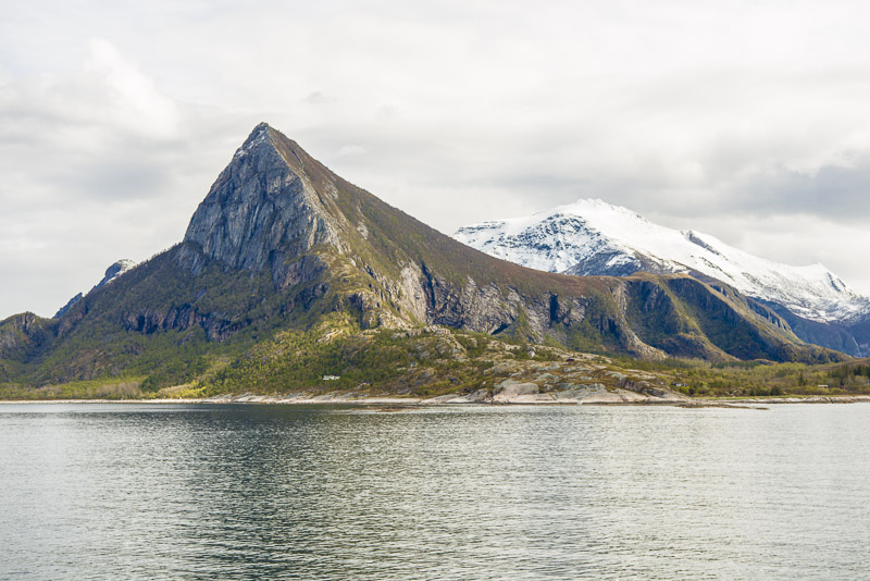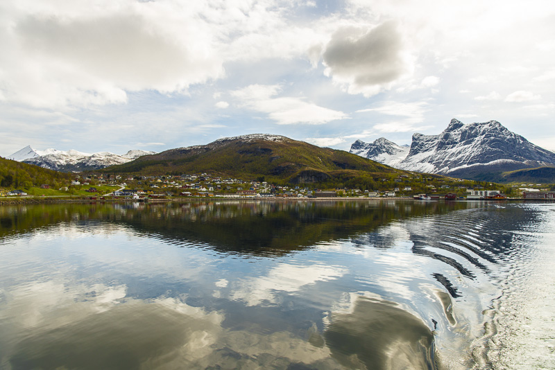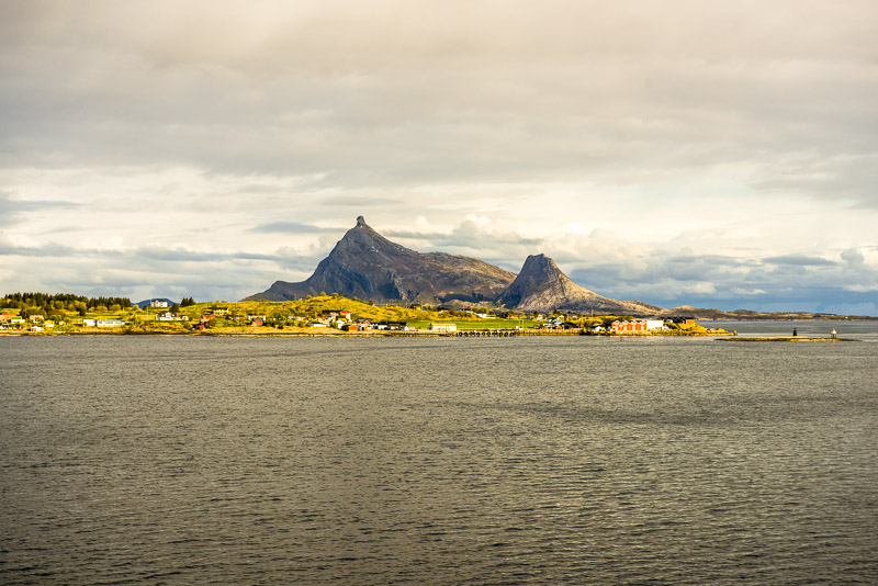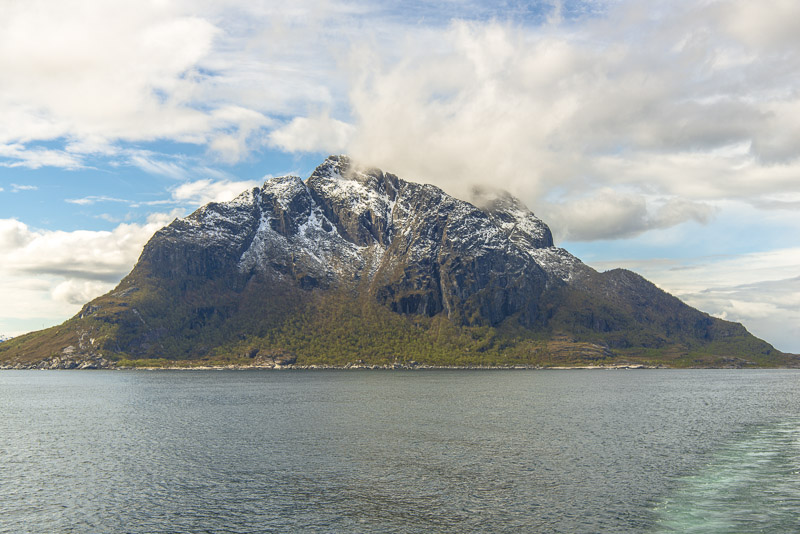 Wir legen gerade in Nesna an. Blick zurück zum Lihauet (843 m)