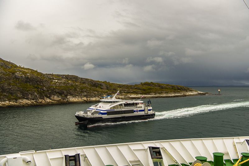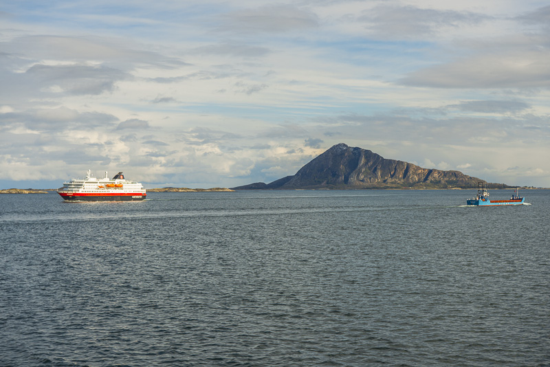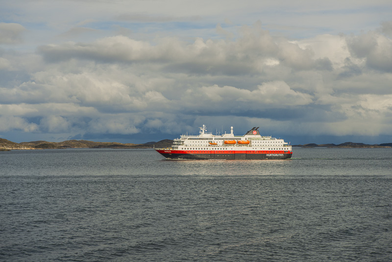 Auf der linken Seite passiert jetzt ein anderes Hurtigruten Schiff (gleicher Bauart wie die Nordnorge), ...