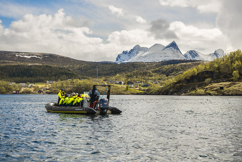 Ich besteige jetzt ein RIB - Boot, das uns zum Saltstraumen bringt. Es wird ein wilder Ritt über die Wellen, bis zu 60 km/h schnell.