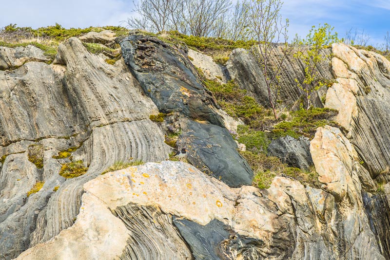 Vom Gletscher abgehobelter Fels mit freigelegten Gesteinsschichten.